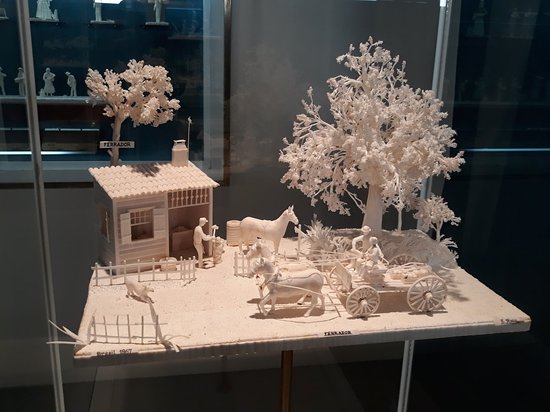 I thought the museum had acquired more pieces than seven, but that is all they have. They have one of my favorites, a piece Archie was weaving while the Wednesday Group was meeting with him in the 2000-teens. It’s called “Main Street Anywhere,” and it is a huge postcard. He covered the front of the piece with white paper before mailing. All his normal sized postcards were mailed without any protection, and he says none of them were ever lost or damaged, except the one he dropped somewhere on the streets of Manhattan on his way to the post office.