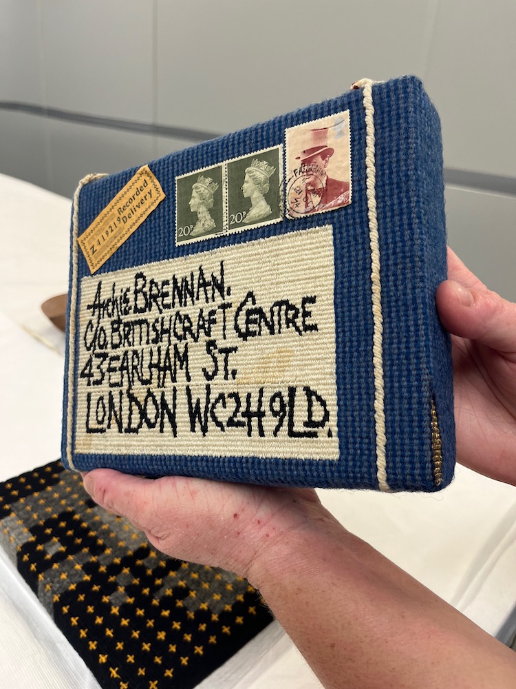 Cecilia Joicy, who is director of textiles at the National Museum, invited me into the storage headquarters of the museum, which is right on the shore of the Firth of Fourth, on the day after I arrived, along with my good friend Kari who was traveling with me.