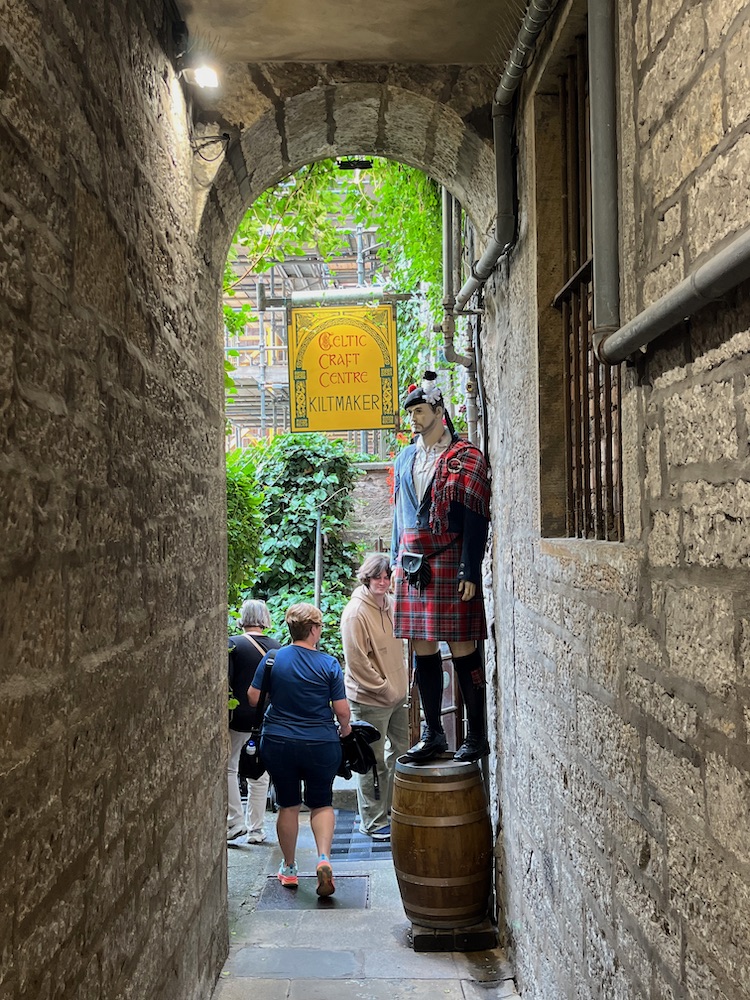 The alleyways are called closes, and there are many of them. I went down the rabbit hole of going into a shop that weaves tartans.