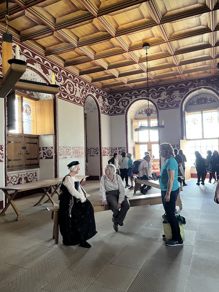 Although I took numerous close up photos of these tapestries, the perspective is odd because of the angle at which I had to take them. I enjoyed the docents who were dressed in period in the anteroom.