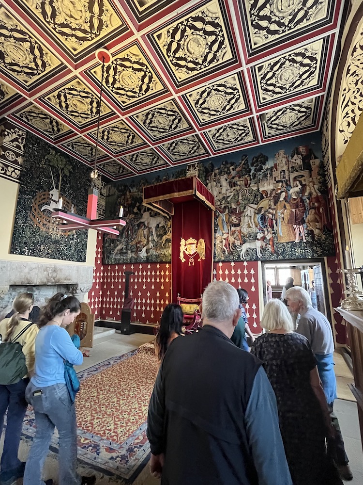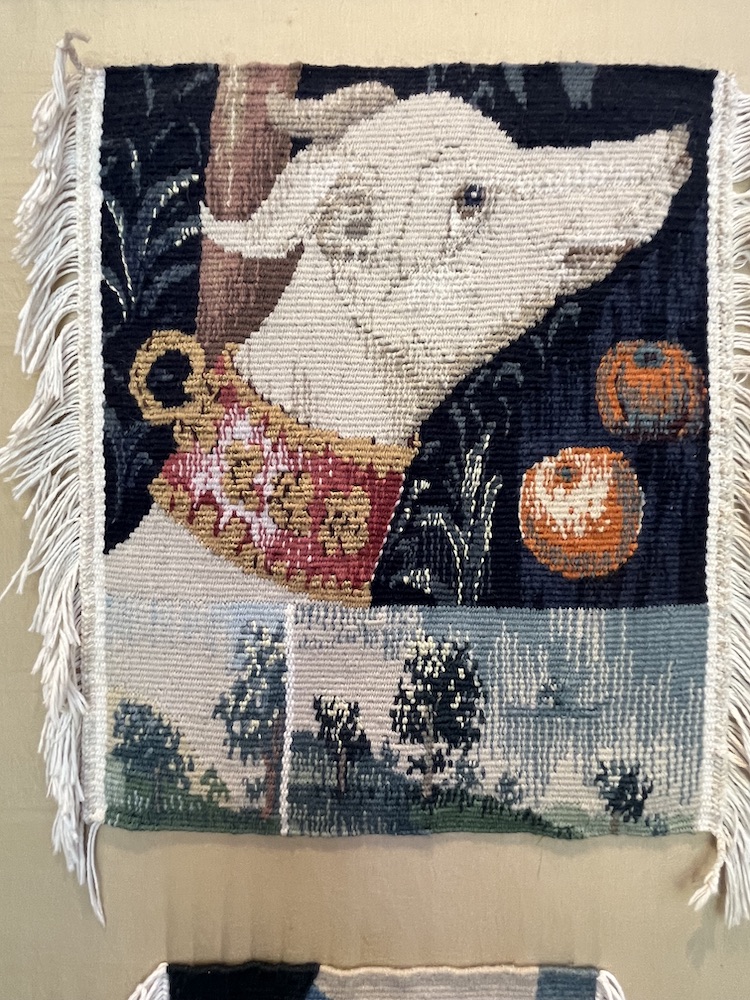 My goal during this short travel to Glasgow was to visit Stirling Castle for the sole purpose of seeing the reproduction tapestries of the “Hunt for the Unicorn” series based on the originals that are housed in the Met Cloisters. I had met the weavers of this daunting project in the mid-2000-teens when they visited the Cloisters to make decisions about warp sett and weft colors. For more than a decade I have hoped to see the finished tapestries. I was disappointed! The tapestries are stunning, and I actually prefer them at the coarser sett used for the reproductions. But…they have been hung so high in the Queen’s Quarters that it is hard to see them well. The walls were already decorated in the style of the period, which fights with the tapestries.