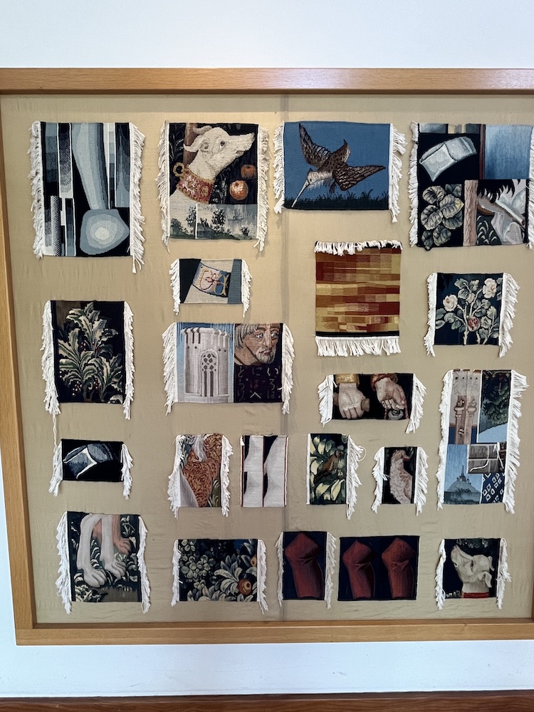 The best part of this exhibit was seeing the small trial tapestries woven to practice details from the original tapestries that would be translated at a coarser warp sett. While this display shows 21 small woven samples, the weavers actually wove over a hundred small samples.