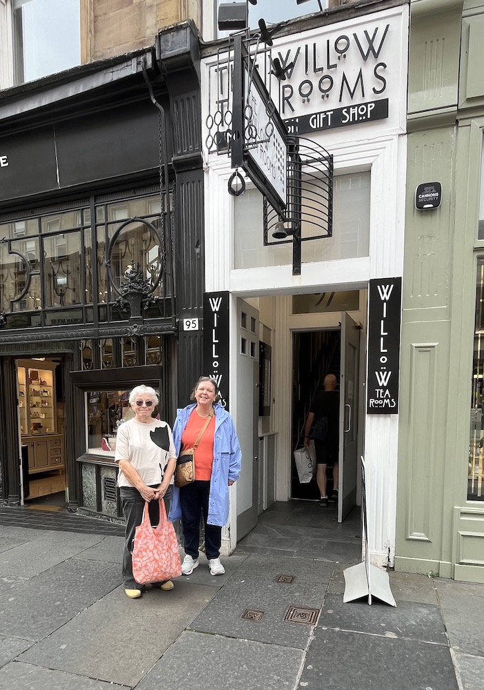 It wasn’t easy to get to the castle the day we visited. The parking on the castle grounds was completely full by late morning, and finding parking in the center of Glasgow was no easy feat. But after driving around a bit (thank you, Lesley!) we parked and made the steep trek up to the castle. Lesley, Kari, and I stayed in a charming small hotel that evening, just a short drive to the Charles Rennie Mackintosh Museum in Kelvinggrove Park. Lesley has visited Glasgow a number of times and recommended that no lover of Charles Rennie Mackintosh should miss having tea at one of his original tearooms.