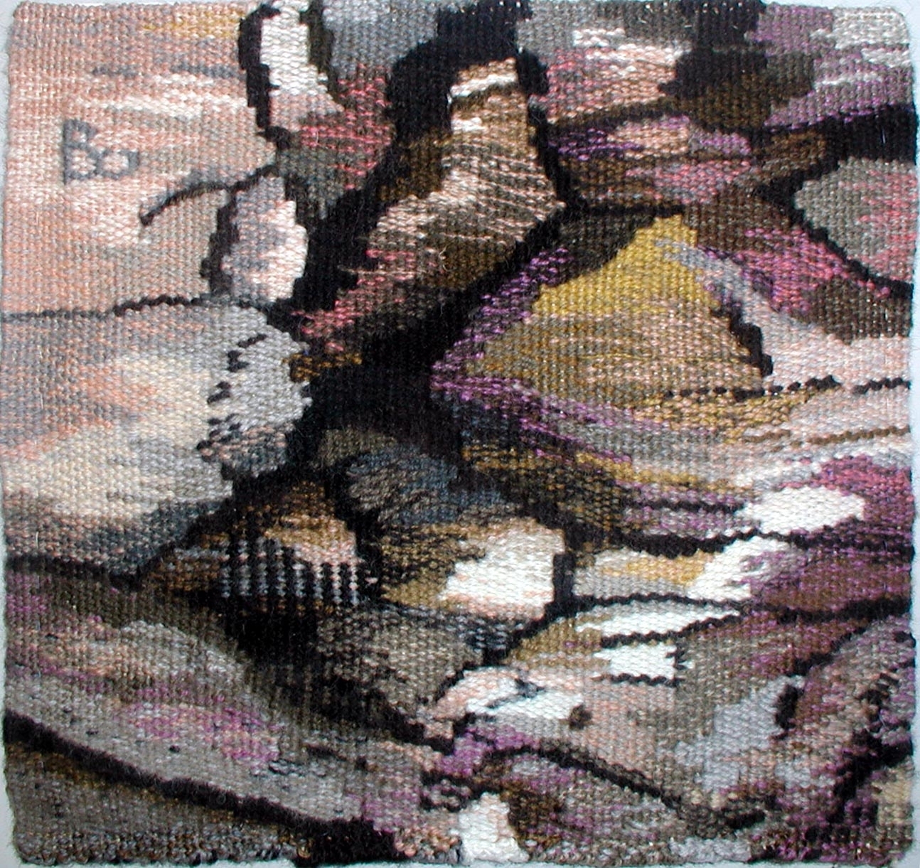 Warp: cotton seine twine. Weft: wool. 8 ends per inch.