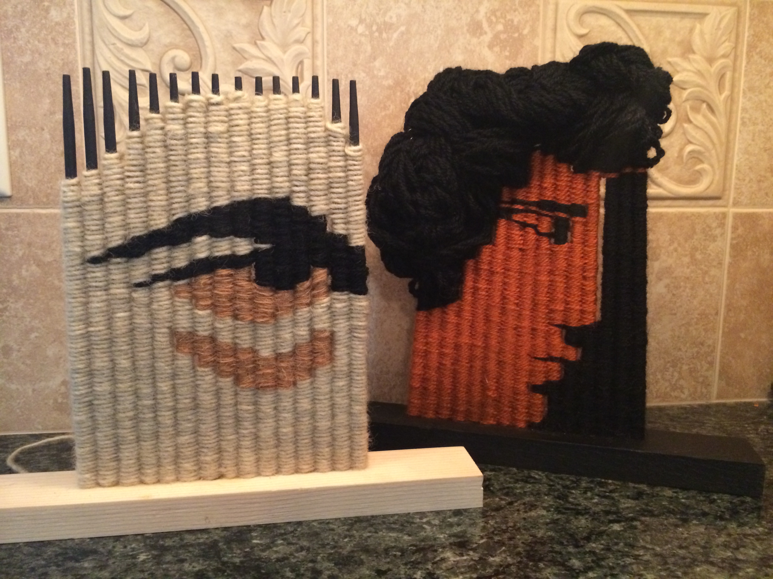 Chopstick Triptych: Red Figure Artemis (#1) on right, unfinished Theseus (#2) on left