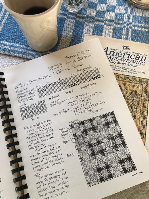 In the article, Madelyn credits both Mary Meigs Atwater and Ulla Cyrus-Zetterstrom with publishing some of the earliest examples of DDW. You can find Atwater’s pattern in her “Recipe Book” under the title “Ancient Colonial Shawl.”