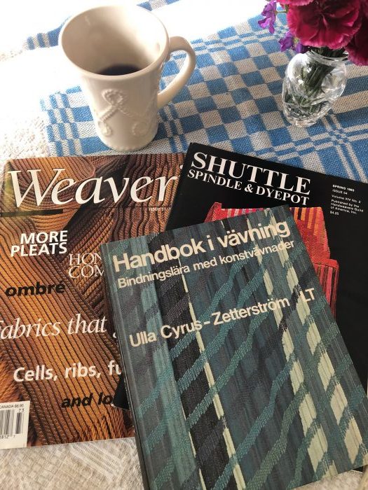 Lastly, I visited Janney Simpson yesterday, a friend from my local weaving guild who has done quite a bit of experimentation in this structure (see Handwoven, Nov/Dec 2016, for her article and DDW scarf project). I am considering one of her looms as a replacement for two of mine. Does this make sense? I think by combining the advantages of both my AVL 16-S loom and my large 60″ wide Toika into one loom, I can have more studio space, which translates to more commodious space for my new taka dai and a bigger cutting table for sewing. I am leaning toward buying a 60″ AVL compudobby with 16 shafts. My friend’s house is full of looms! Yesterday I saw that most of her looms had various DDW projects in progress. It was an inspiring visit!