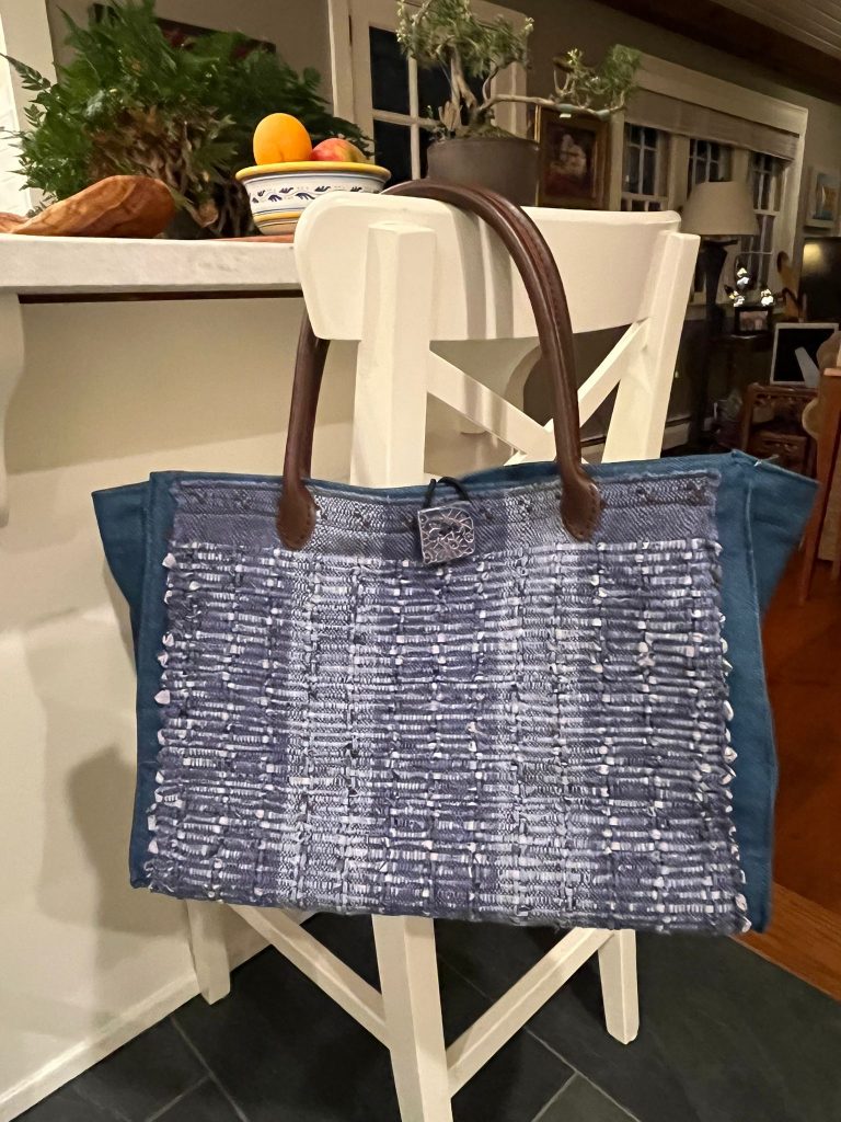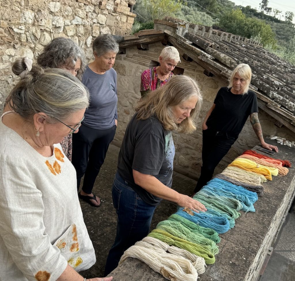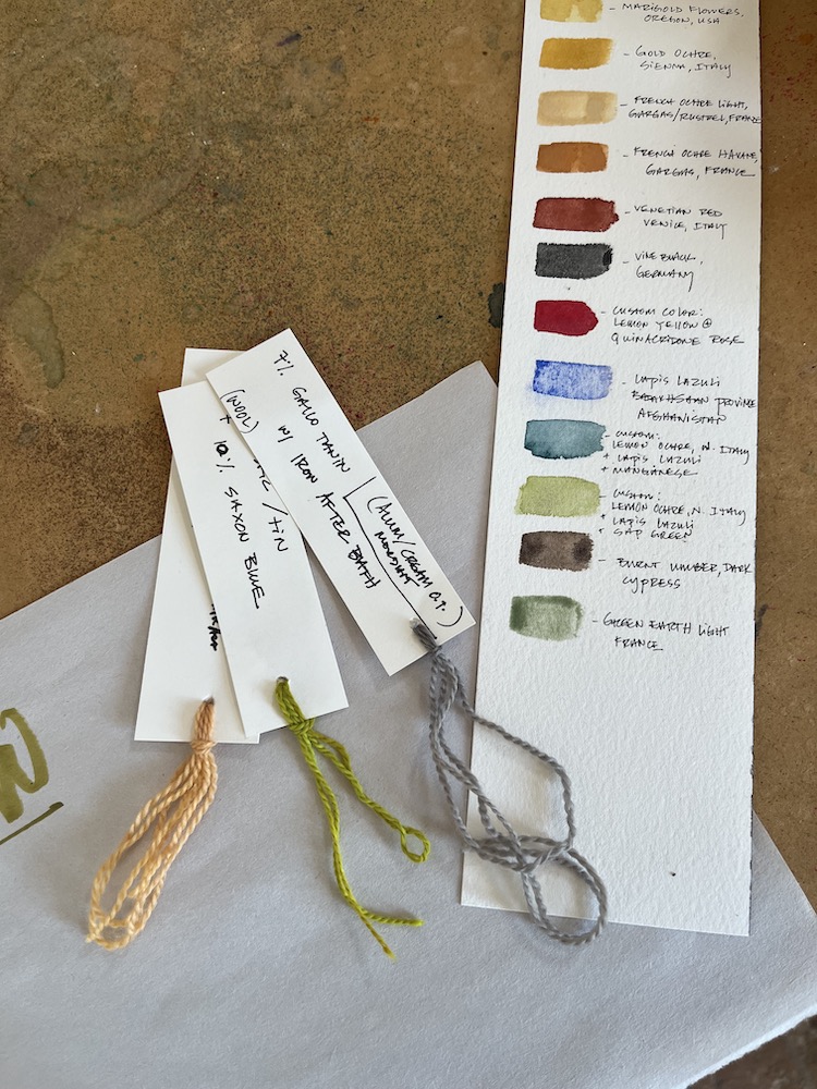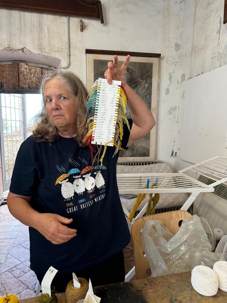 And another moving moment of this day was meeting John Brennan and Anna Wetherell. John was also one of Archie’s first students. I was one of his last, yet we are are rather close in age. John and Elizabeth and Anna have had a lifetime of weaving tapestry. I have had a lifetime of weaving, but I didn’t come to tapestry until just before the turn of the century–a mere 25 years ago or so. In the photo Anna is giving me a large format postcard of the Murmuration Collaboration which I have been following for some time now. I was able to buy the catalog, and the group has a substack site with detailed images and essays by the weavers who participated in this project.