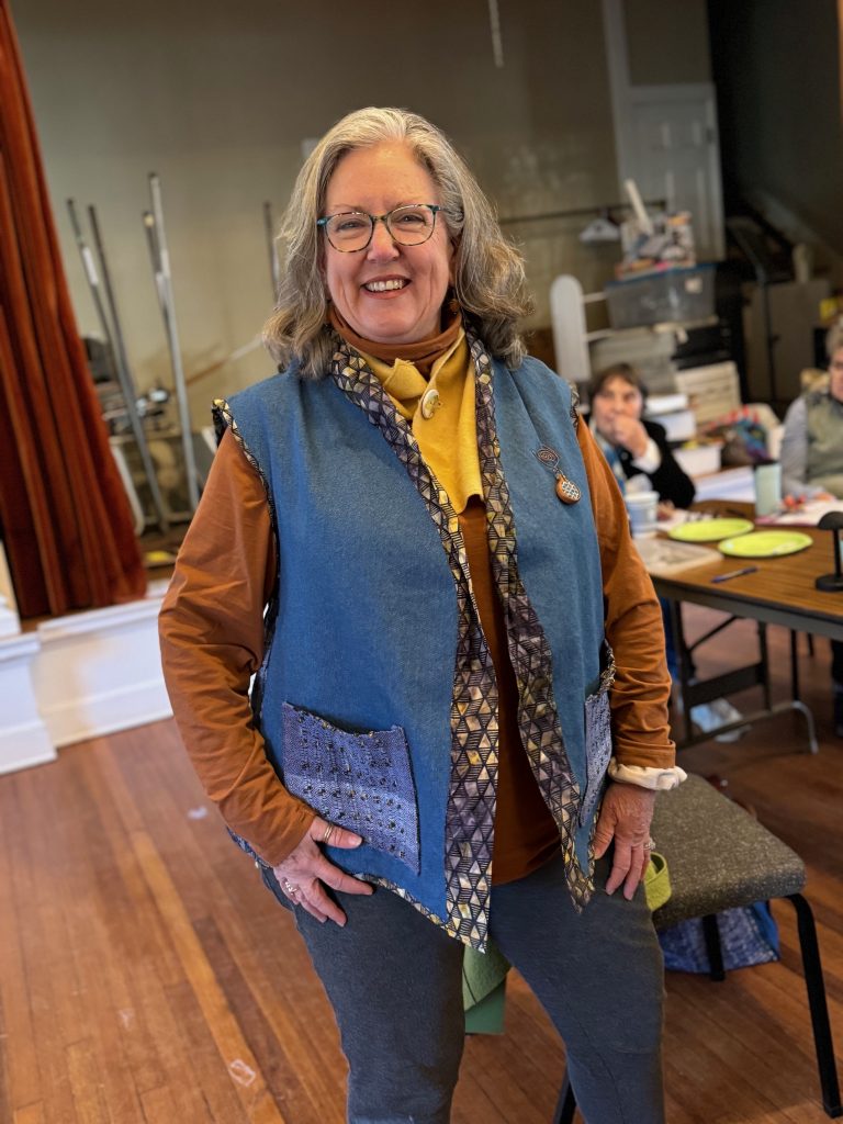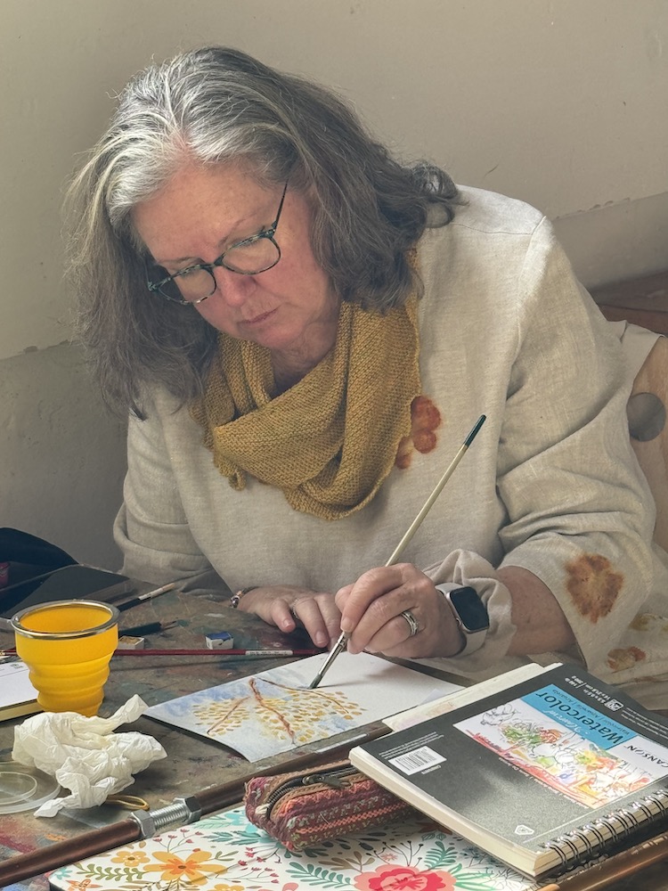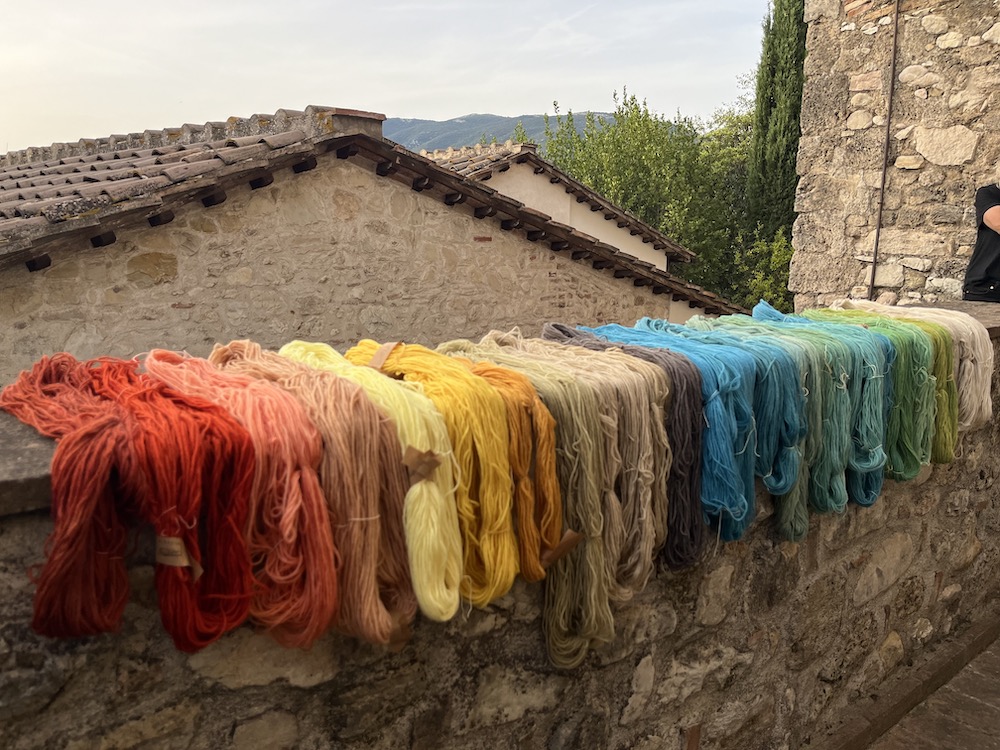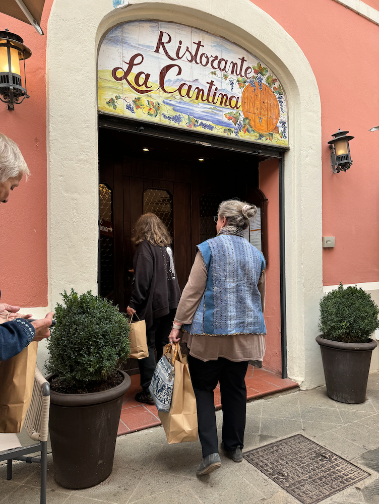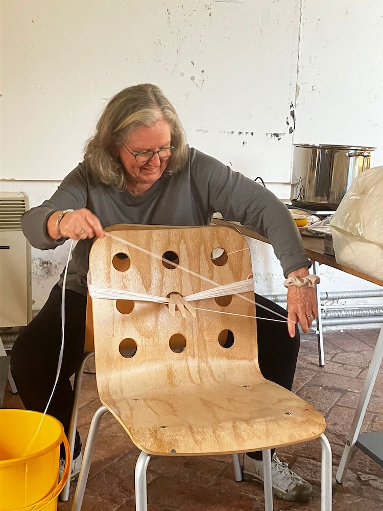 And another moving moment of this day was meeting John Brennan and Anna Wetherell. John was also one of Archie’s first students. I was one of his last, yet we are are rather close in age. John and Elizabeth and Anna have had a lifetime of weaving tapestry. I have had a lifetime of weaving, but I didn’t come to tapestry until just before the turn of the century–a mere 25 years ago or so. In the photo Anna is giving me a large format postcard of the Murmuration Collaboration which I have been following for some time now. I was able to buy the catalog, and the group has a substack site with detailed images and essays by the weavers who participated in this project.