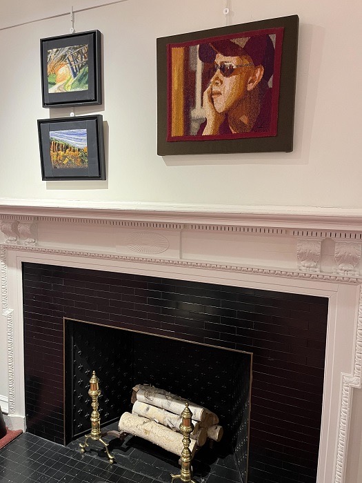 I thought the museum had acquired more pieces than seven, but that is all they have. They have one of my favorites, a piece Archie was weaving while the Wednesday Group was meeting with him in the 2000-teens. It’s called “Main Street Anywhere,” and it is a huge postcard. He covered the front of the piece with white paper before mailing. All his normal sized postcards were mailed without any protection, and he says none of them were ever lost or damaged, except the one he dropped somewhere on the streets of Manhattan on his way to the post office.