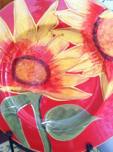 Surrounded by so many flowers, it’s no wonder I’m thinking about them for my next tapestry. I am halfway through the final pear in my ‘Trail of Pears,’ so I’ve been designing the next tapestry. I’m intrigued by a still life based on a woodcut of nasturtiums in a bowl.