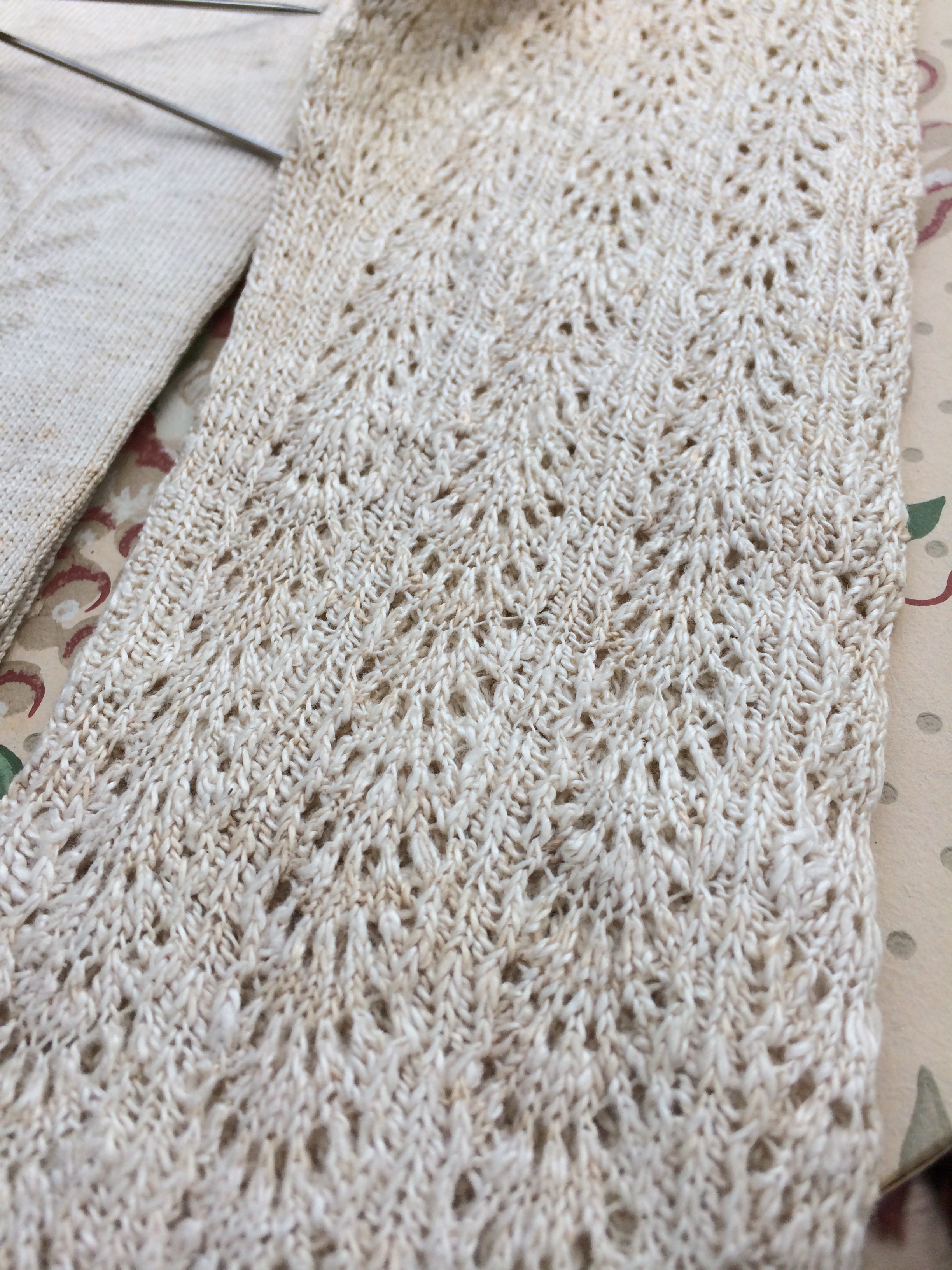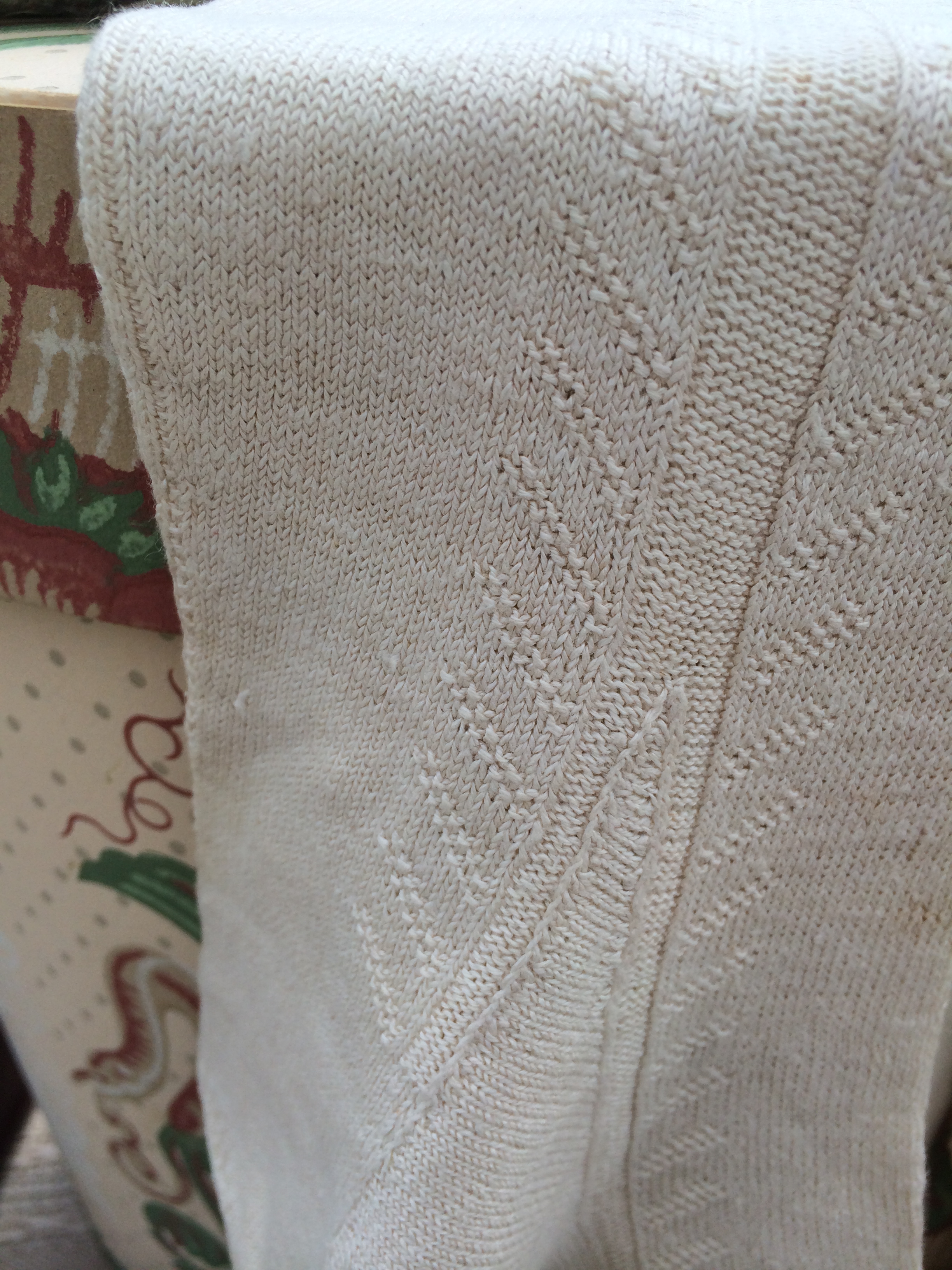 And a close up of each of these beauties! First, feather and fan (okay, close up I can believe this was handknit):