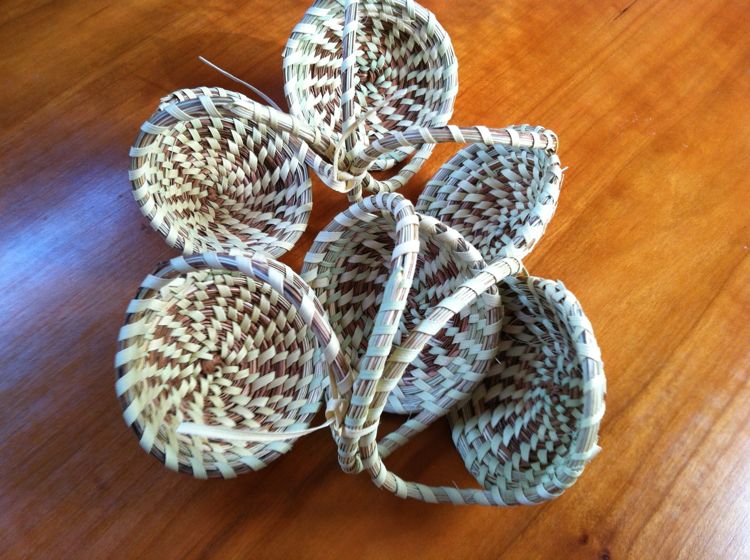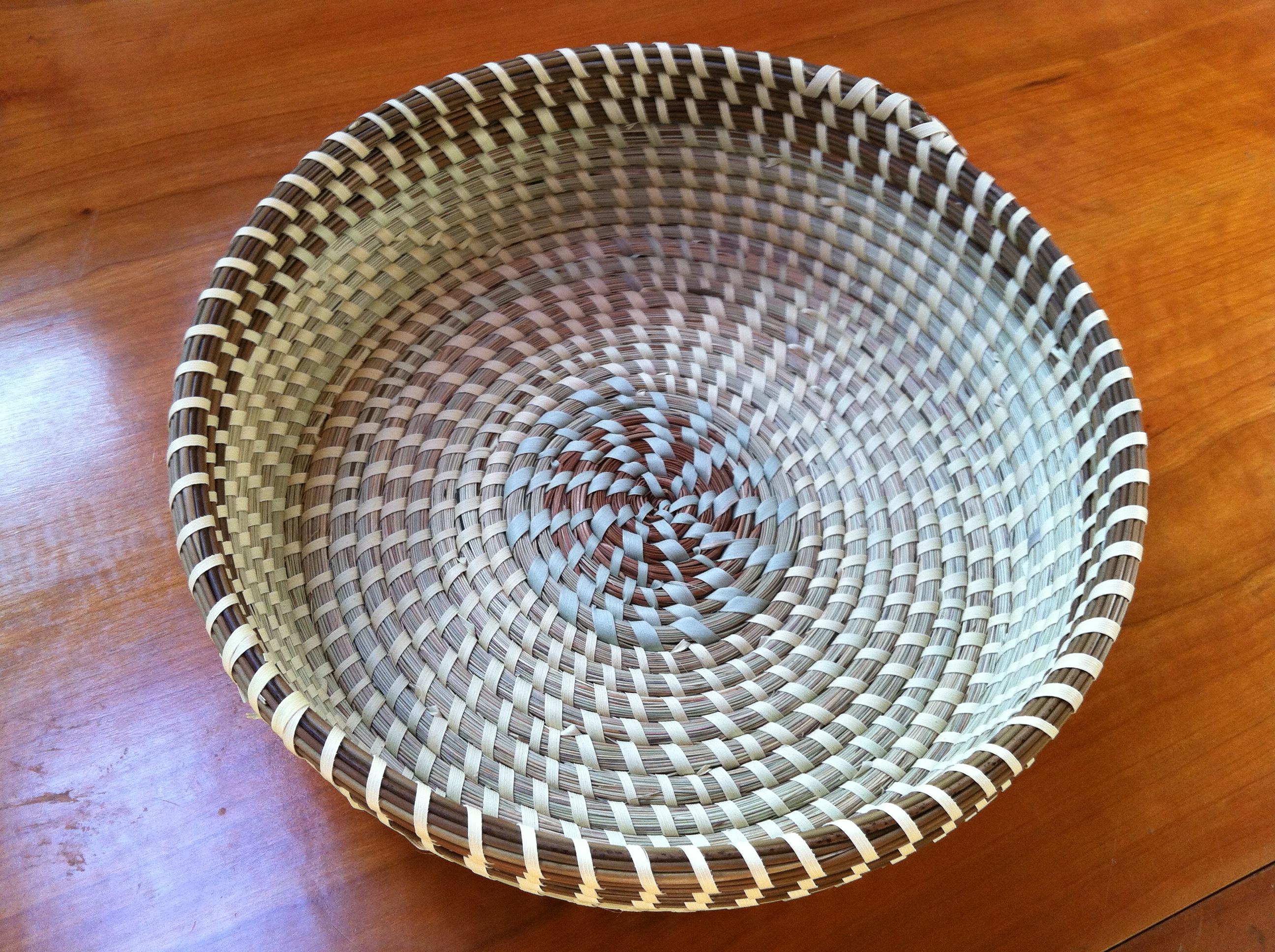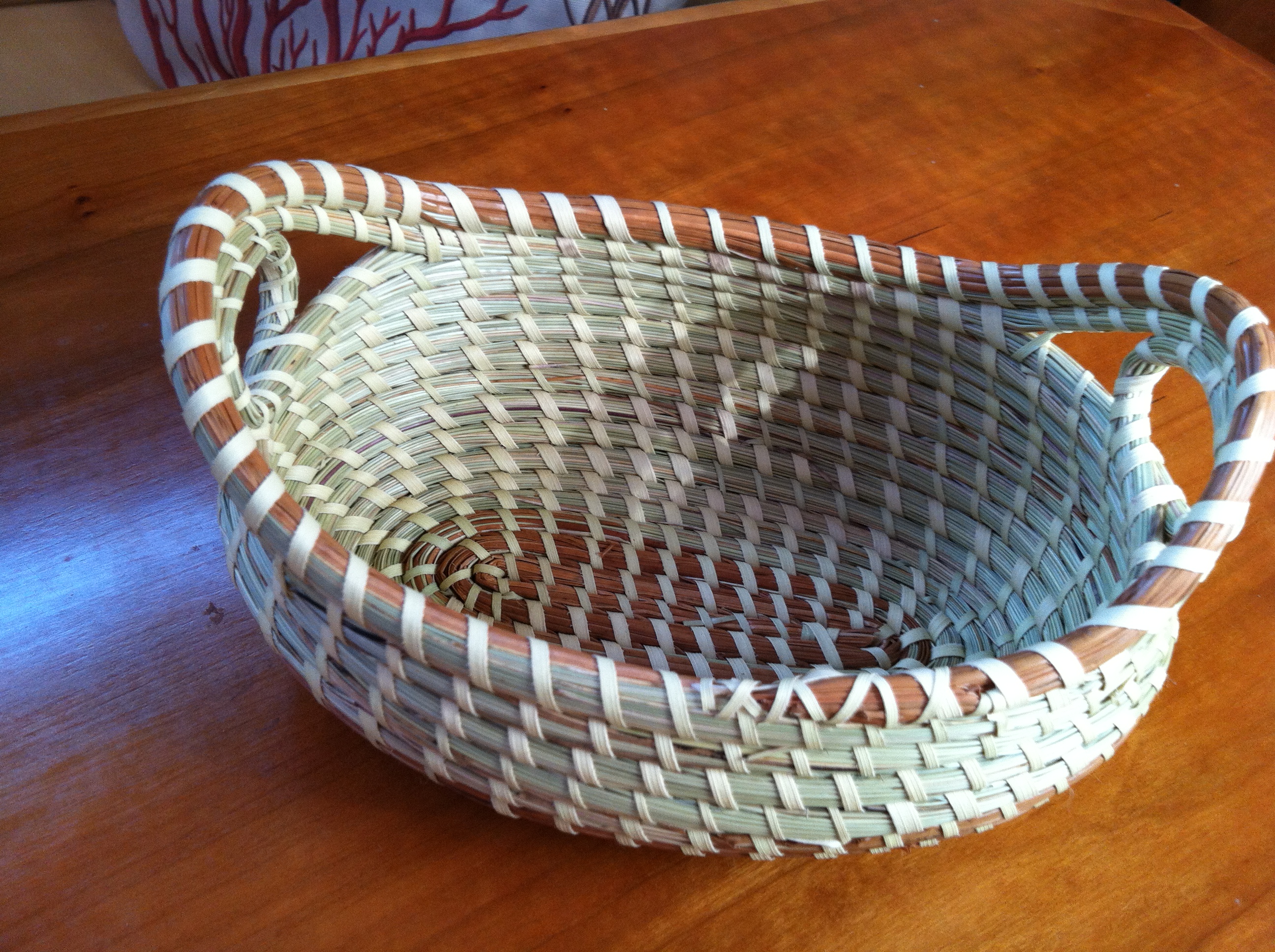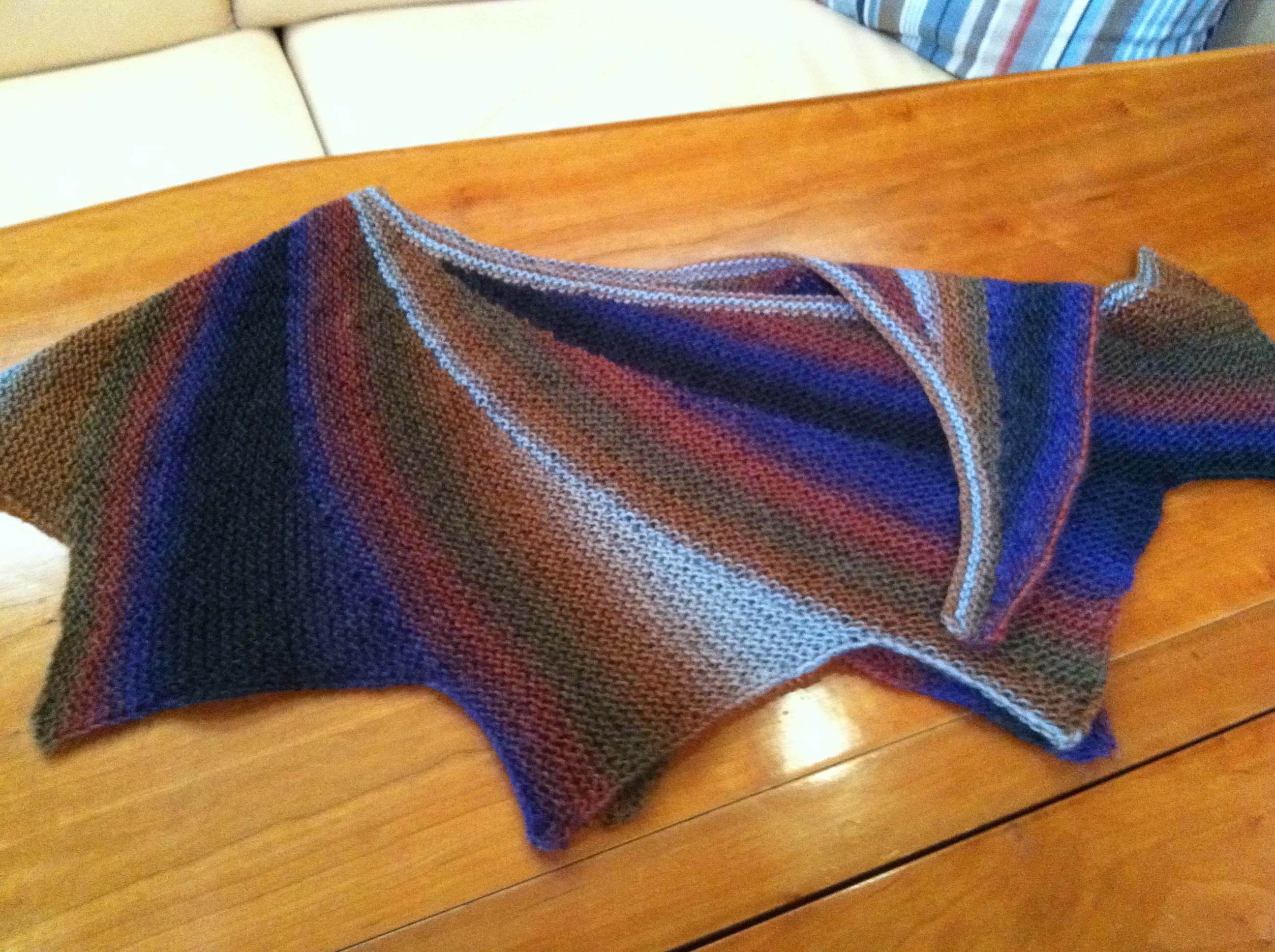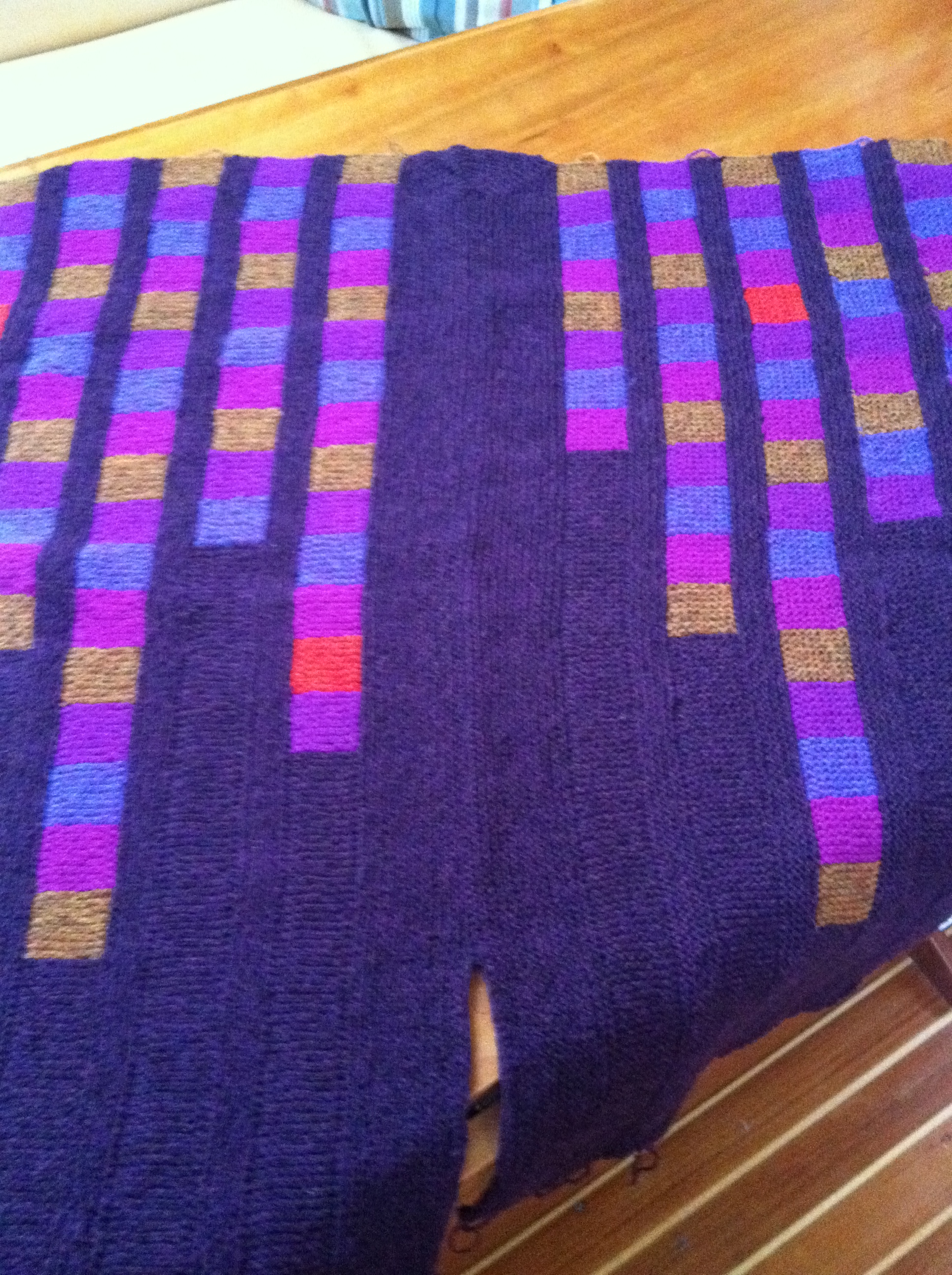 I’ve completed pear #4 in my ‘Trail of Pears.’ Each pear has brought harder color decisions, and #4 caused me to call on the advice of both my husband and younger son. I had every shade of gold in my yarn palette out and none of them worked. Chris helped me let go of my preconceived notion that the pear had to be in the yellow family. That pear is a tan that I would never have considered if not for Chris. Now it’s finished and soon the background around pear #5 (the final pear) will be finished as well, which will mean making the final pear color choice. I plan to be at my Wednesday Group class next week so I can get some input from all the weavers there. Whew!