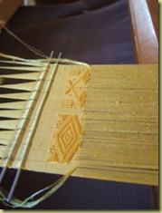So, what did I do wrong? Well, first (and probably most importantly) the distance between the bottom of the shafts, the top lamms, bottom lamms and treadles should be about the same. Not knowing exactly what that meant I had them within 2″ of the same distance apart. Su said I needed to get all these within a 1/2″ of the same distance. Bingo! The other dilemma was my treadle height. Doing it as described on her website didn’t give me the necessary position when the locking pins were removed. My treadles ended up slanting upwards toward the bench, and that was no fun for trying to depress them! She was familiar with this little quirk on some looms and explained to me what to do. Now everything is in great working order!