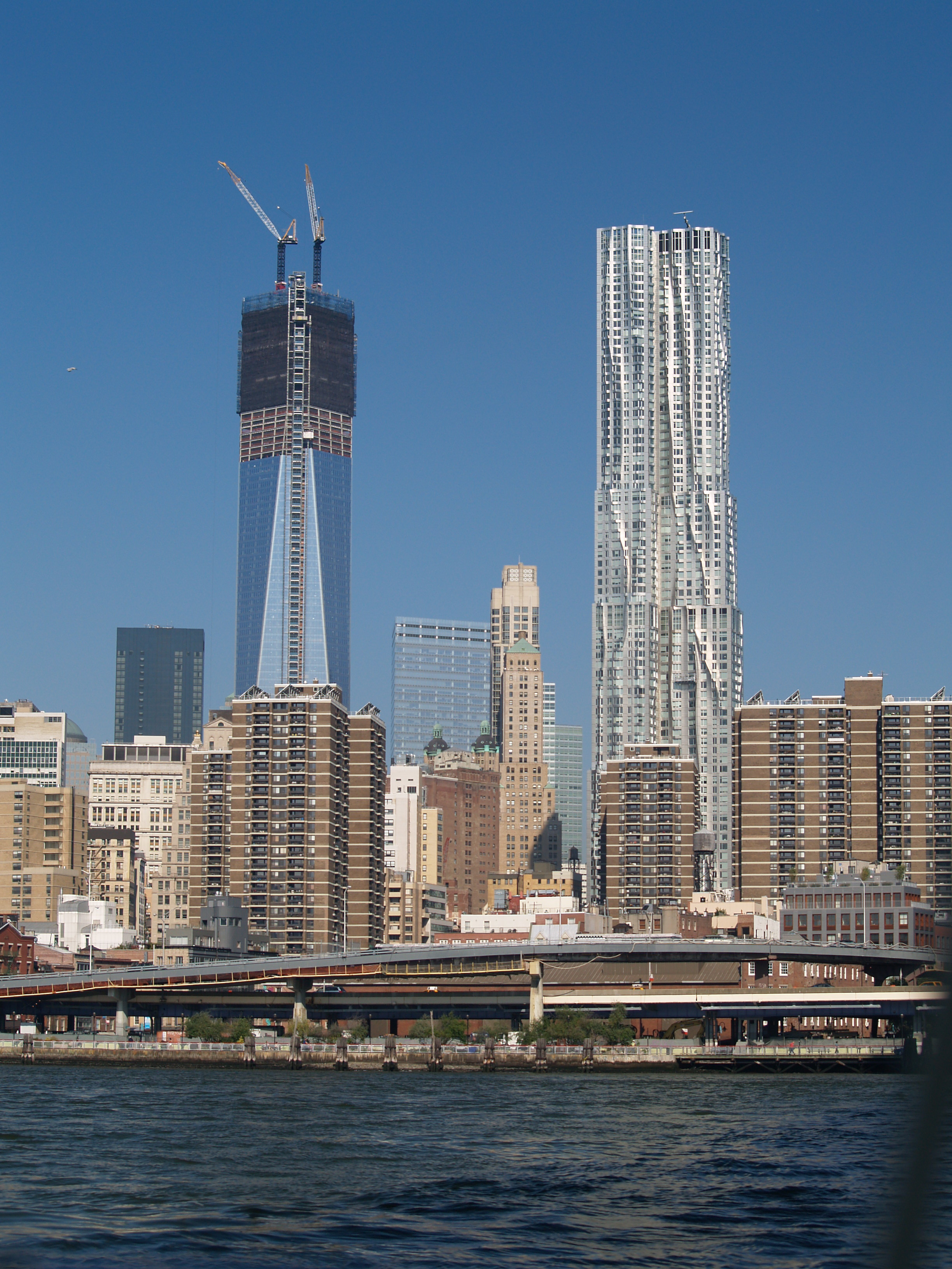 In Chris’s case this meant dodging a lot of traffic on 1st and 2nd Avenues. We, on the other hand, were just sluicing down the East River at half throttle, with a favorable current pushing us and luckily no other traffic! We won this leg by several minutes. Chris had some bad information on the quickest route downtown, so he was terribly disappointed to miss getting a shot of us going under the Brooklyn Bridge.