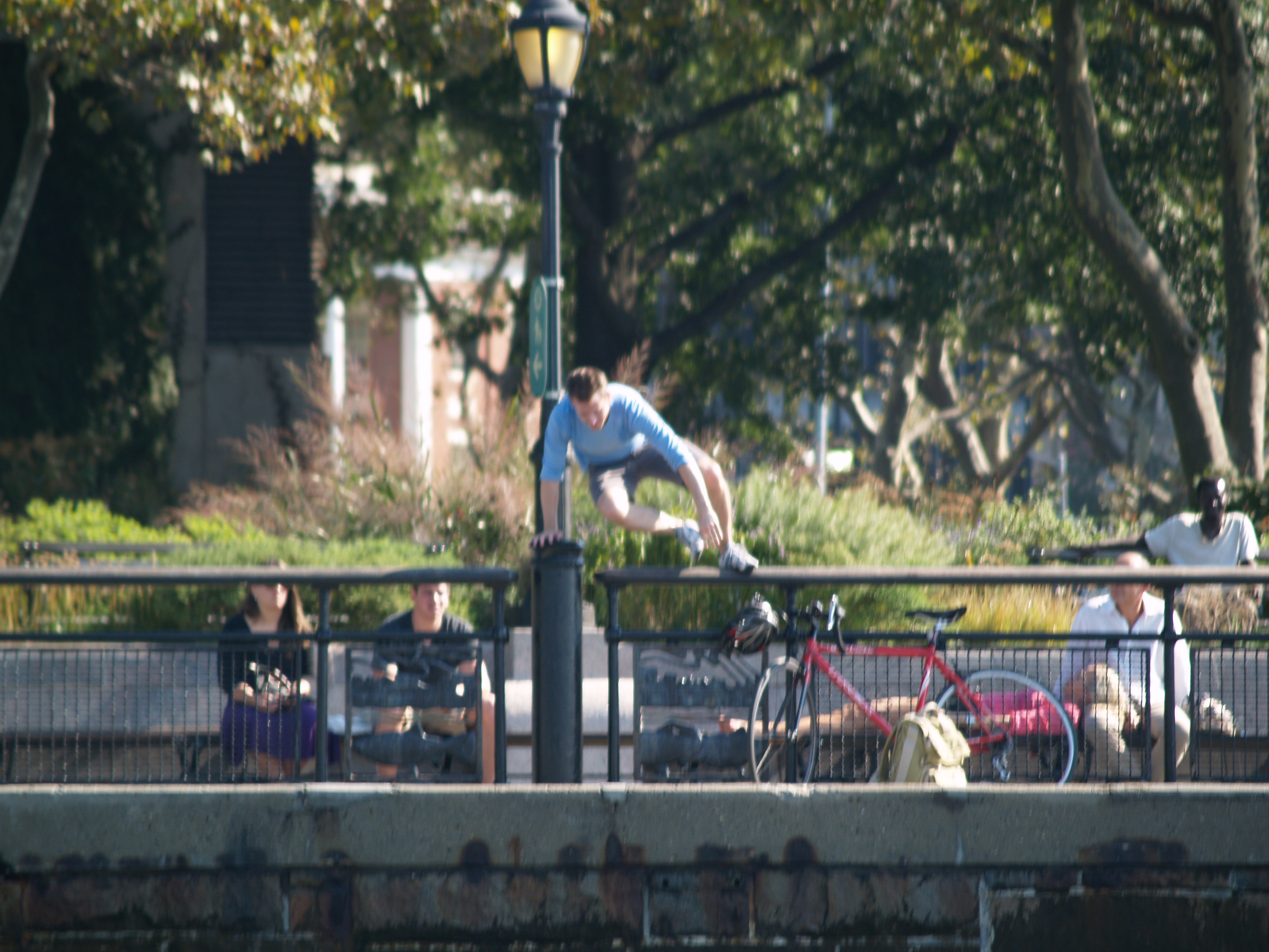 I had quite a moment of panic when Chris jumped over the railing in Battery Park to get a photo of us. The folks nearby asked if he was planning to swim out to us….