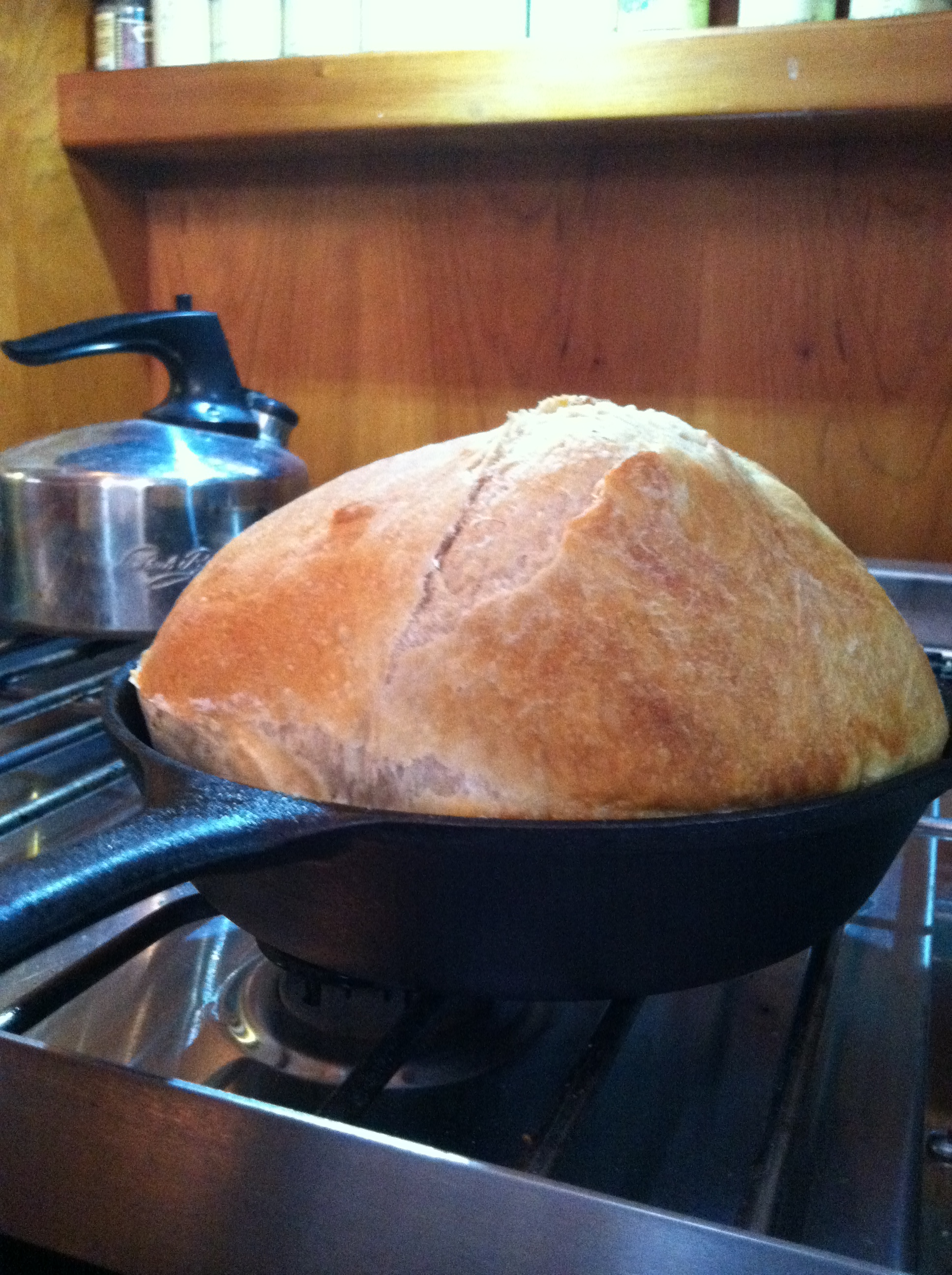 Perfect day turned into perfect evening as we watched a sunset just like the ones that must have inspired Maxfield Parrish….the sky all ‘parrish’ blue and deep rose. Stunning. The bright half moon rose shortly before the sun set, so that as one light faded the other was ready to take its place. The large cumulus clouds that had filled the sky before evening made a dramatic setting for the moon’s travel across the sky. As things go on such rare, perfect days, we also managed to put together a marvelous dinner, which included another loaf of bread fresh out of the oven….wish you could have smelled it!