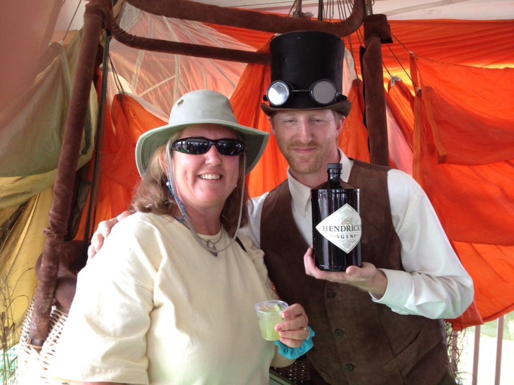 And speaking of SSCA (Seven Seas Cruising Association) I’ll end with a photo from Monday when Bob and I were volunteering in the booth during the boat show. As luck would have it, the Hendricks booth was just across from our booth. We all had to have a little nip to keep warm!