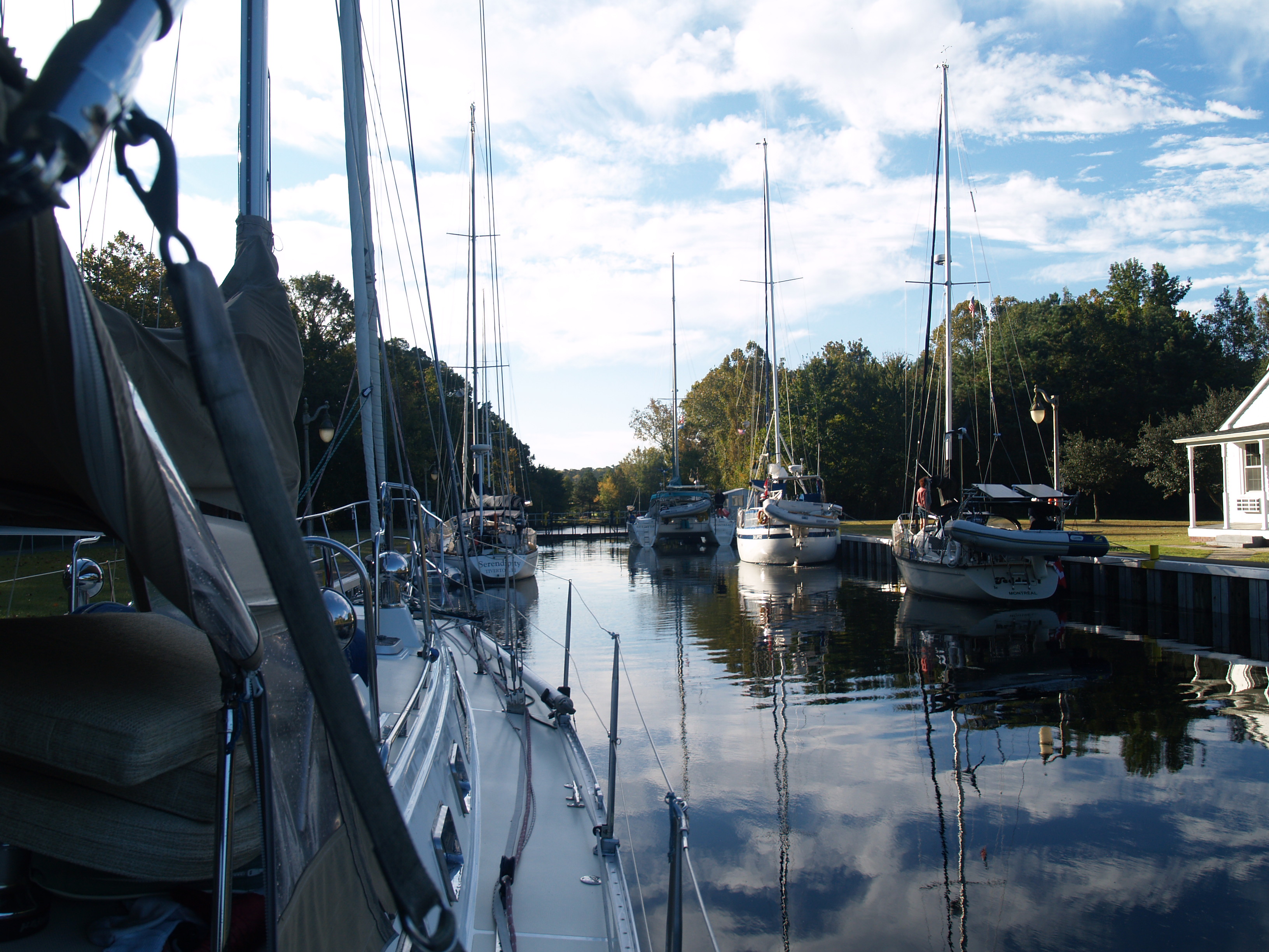 Entering the second lock at South Mills, this time accompanied by quite a few more boats! Going down was even easier than going up.