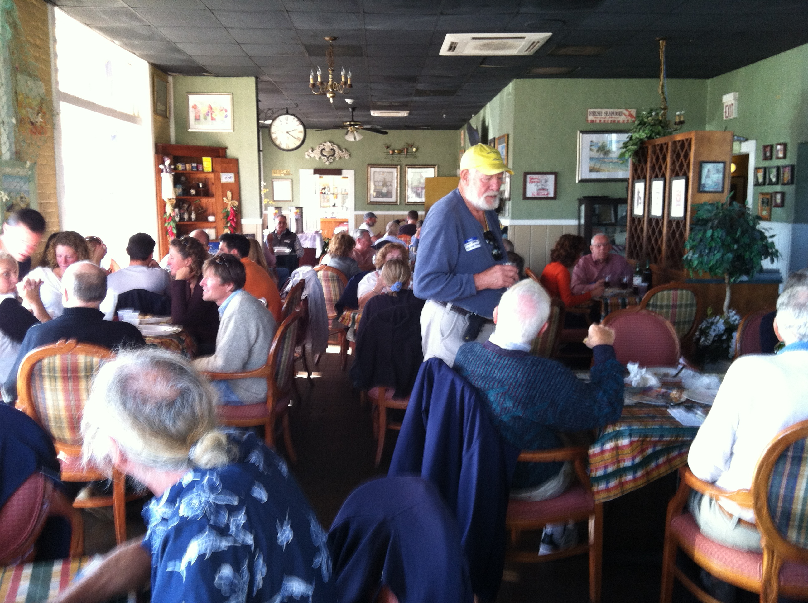 Hotel owners Jerry and Gayla Brandon started our morning off with a bang by mixing up a large cooler of Bloody Marys while Charlie Jacobs delivered them by dinghy to every boat in the harbor!  I’ve never had a drink at 8.30 am, but I do highly recommend it!