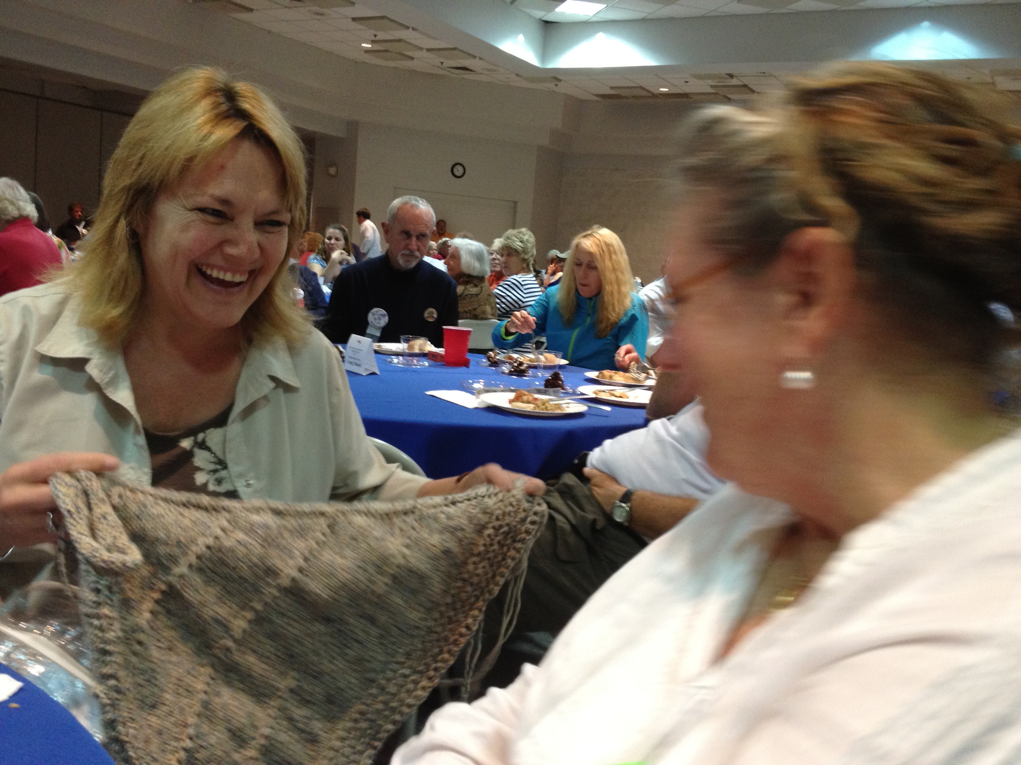 This has been an exciting weekend for me! I have met a weaver from Ontario! Her name is Lois, and she is sailing south to the Bahamas with her husband on their boat Astar. She has a large 8-shaft LeClerc, a 10-shaft draw loom, and the same 8-shaft Baby Wolf that I have. She knits and spins as well, so we had a lot to discuss! One of her wheels is the same Lendrum (made in Canada) that I have. We both had our knitting with us. She has her OHS certificate of excellence in weaving and has worked in some capacity for that organization. She is a member of very large guild in the Ontario area. I can’t wait to learn more about that. She has heard of my regional guild, MAFA (Mid Atlantic Fiber Association), but not my new regional guild NEWS (New England Weavers Seminar). We both started weaving in the mid-70s. It is so wonderful to have finally found another weaver!