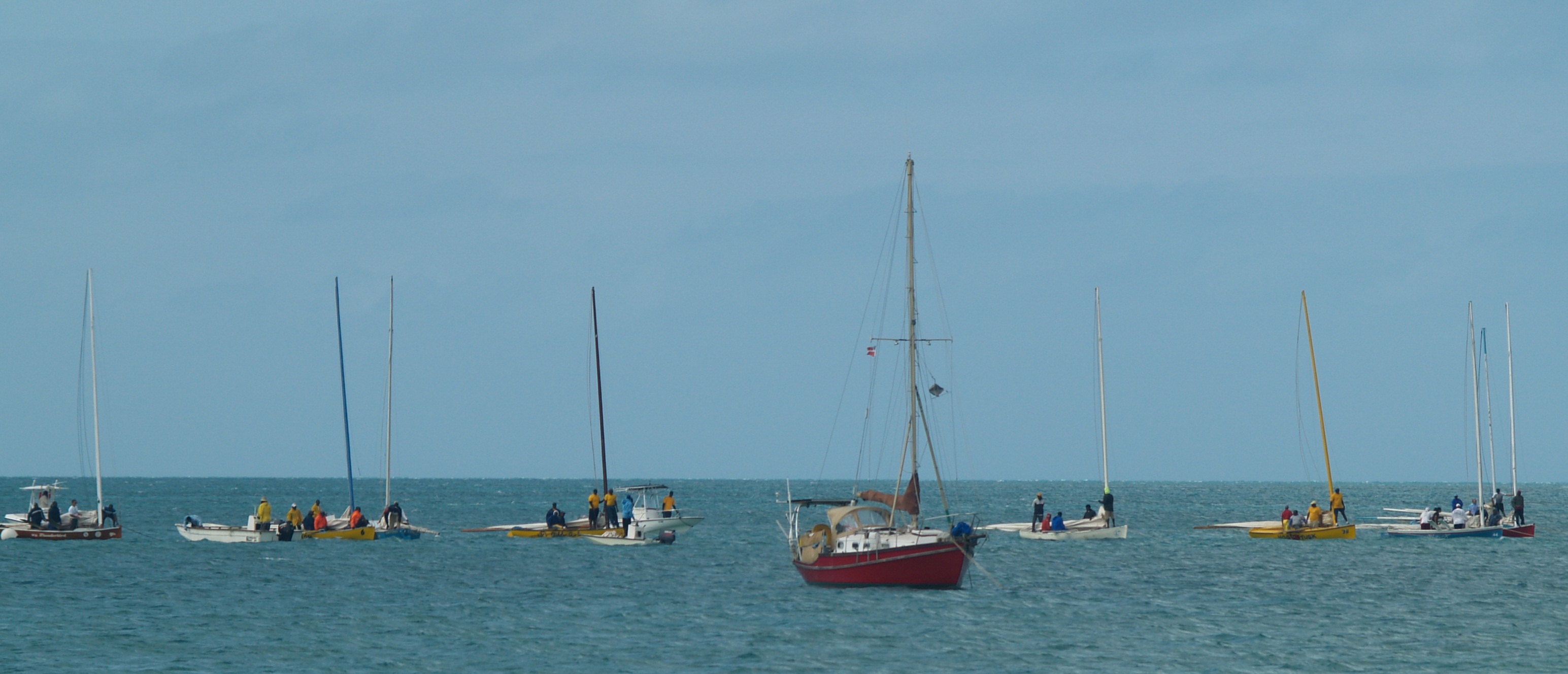Others arrived by smaller powerboats. I don’t know how other sloops arrived to make a total of nine boats to race in the 2-day regatta. There were also souvenirs for sale, brought in by boat as well.