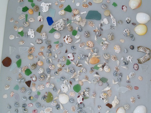 My most recent cache of shells and sea glass drying in the cockpit. Even when I’m looking for palm fronds, shells are always part of the foraging.