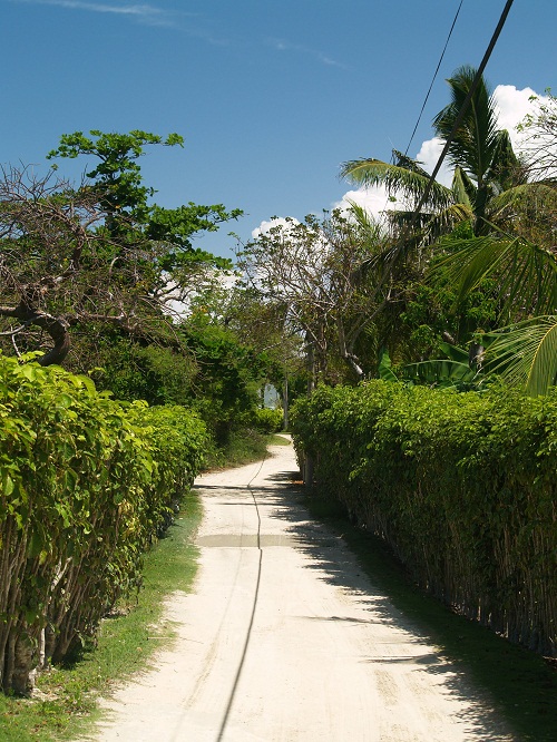 Walking through the north end of town along the “road” better suited to golf carts than to any bigger vehicles.