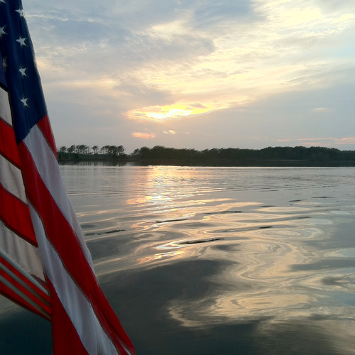 So we sat in the cockpit of Pandora, enjoying this view all the way through sunset. We blew the conch shell to herald the night, and headed out to dinner ashore in Belhaven, North Carolina.