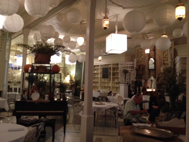 Luckily we had already planned to go out to dinner. Boy, did we choose a fun spot! The Spoon River Artworks and Market….interesting name since I saw neither artworks or market, but only a restaurant! And a very nice one too. Here is a view from our table… it’s lovely, isn’t it? For the first time ever we chose to sit facing inward from a window table, instead of facing outward.