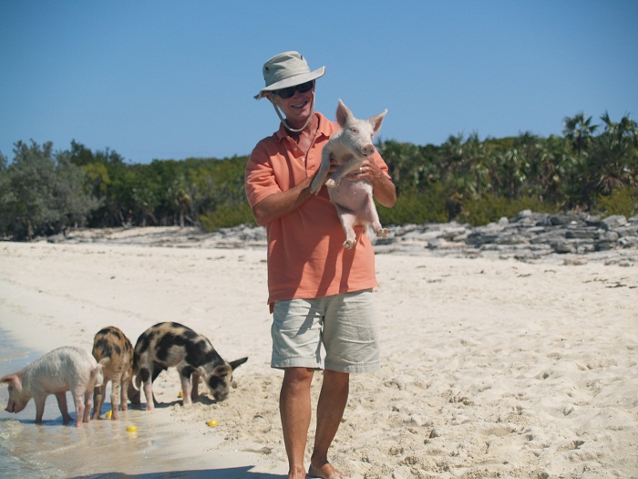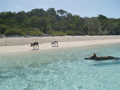 Big Major’s Spot is very popular, so you can never be the only boat at anchor here, but it’s not a safe place in these endlessly clocking winds, so we weren’t there for long this year. The pigs come running at the sound of a dinghy motor. There are baby pigs this year, and they are growing fast. They doubled their size in the two weeks between our visits!