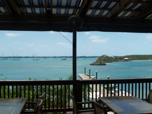 Here is the view of the anchorage off Stocking Island from St. Francis’s outdoor dining deck.