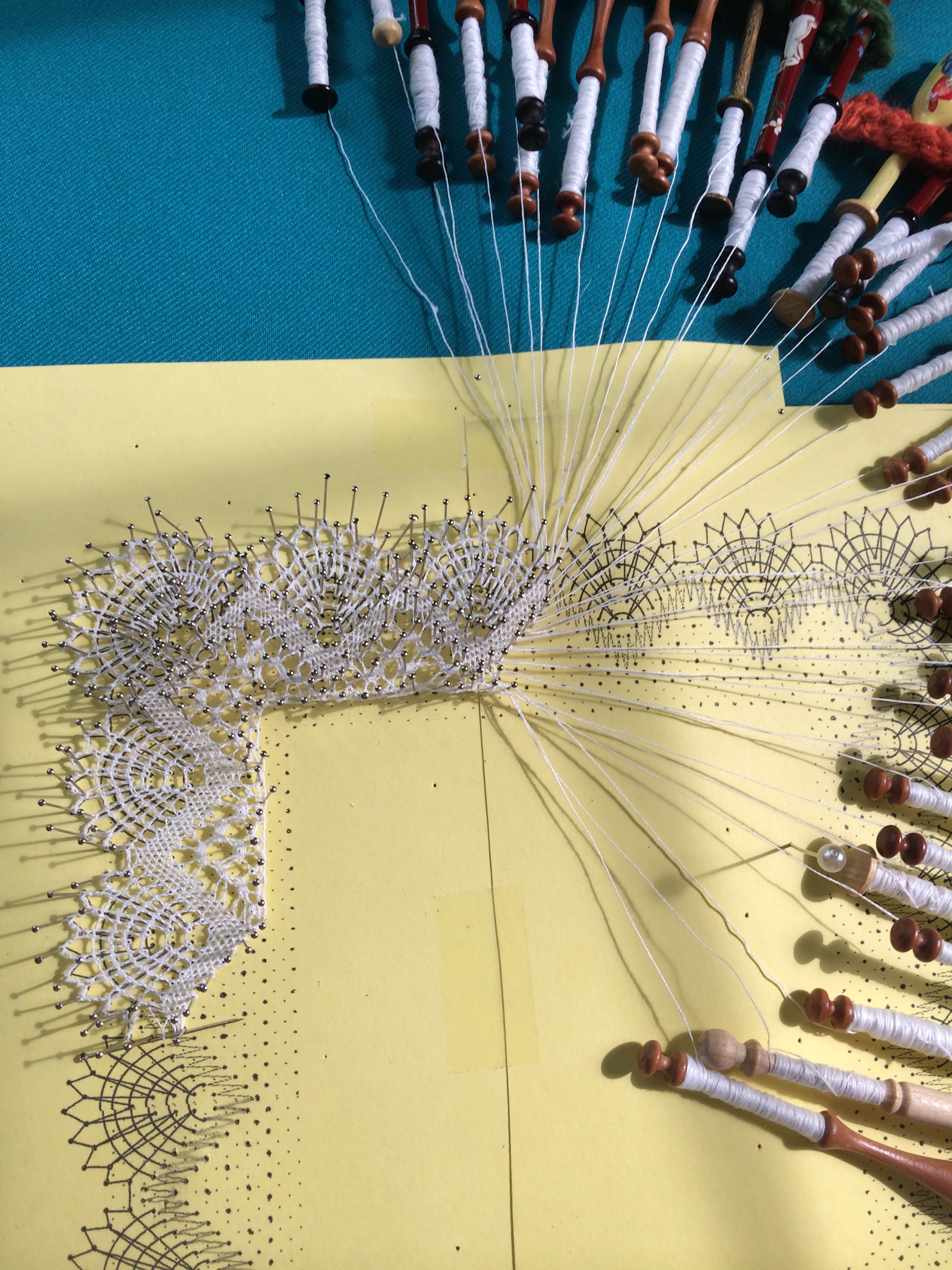Also, I have had some quiet moments to sort through my bobbin lace project. It involved more going backward than I expected! Backward….forward …. further backward….a number of times. In the end I went all the back to the corner, but luckily no further! And now I am happily going forward. It is very calming and therapeutic to do bobbin lace, especially going forward!