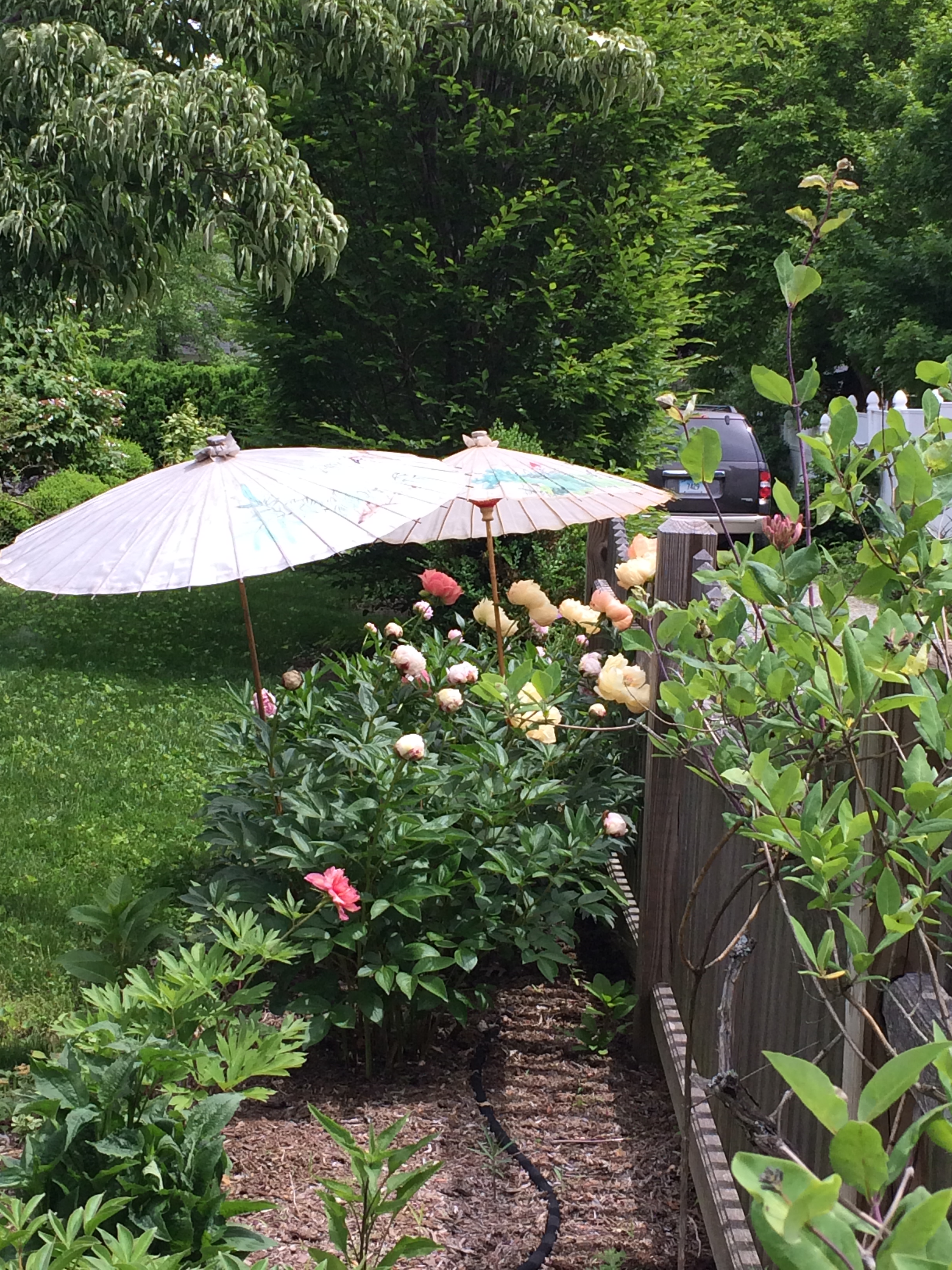 My own deep red “Blaze” peonies have opened, right next to my “Knock Out Julia Child” yellow rose. It’s a glorious time in the garden these days!