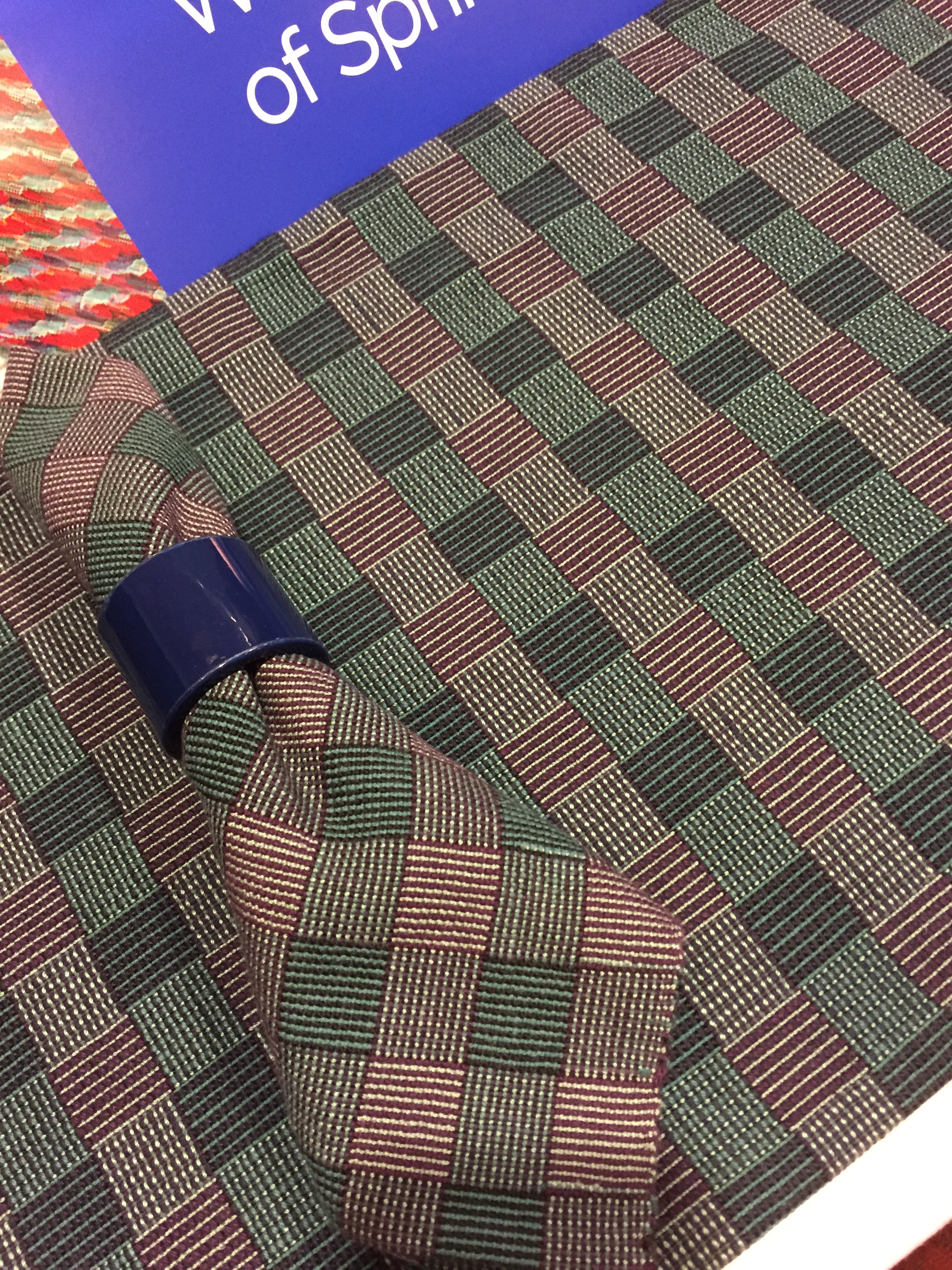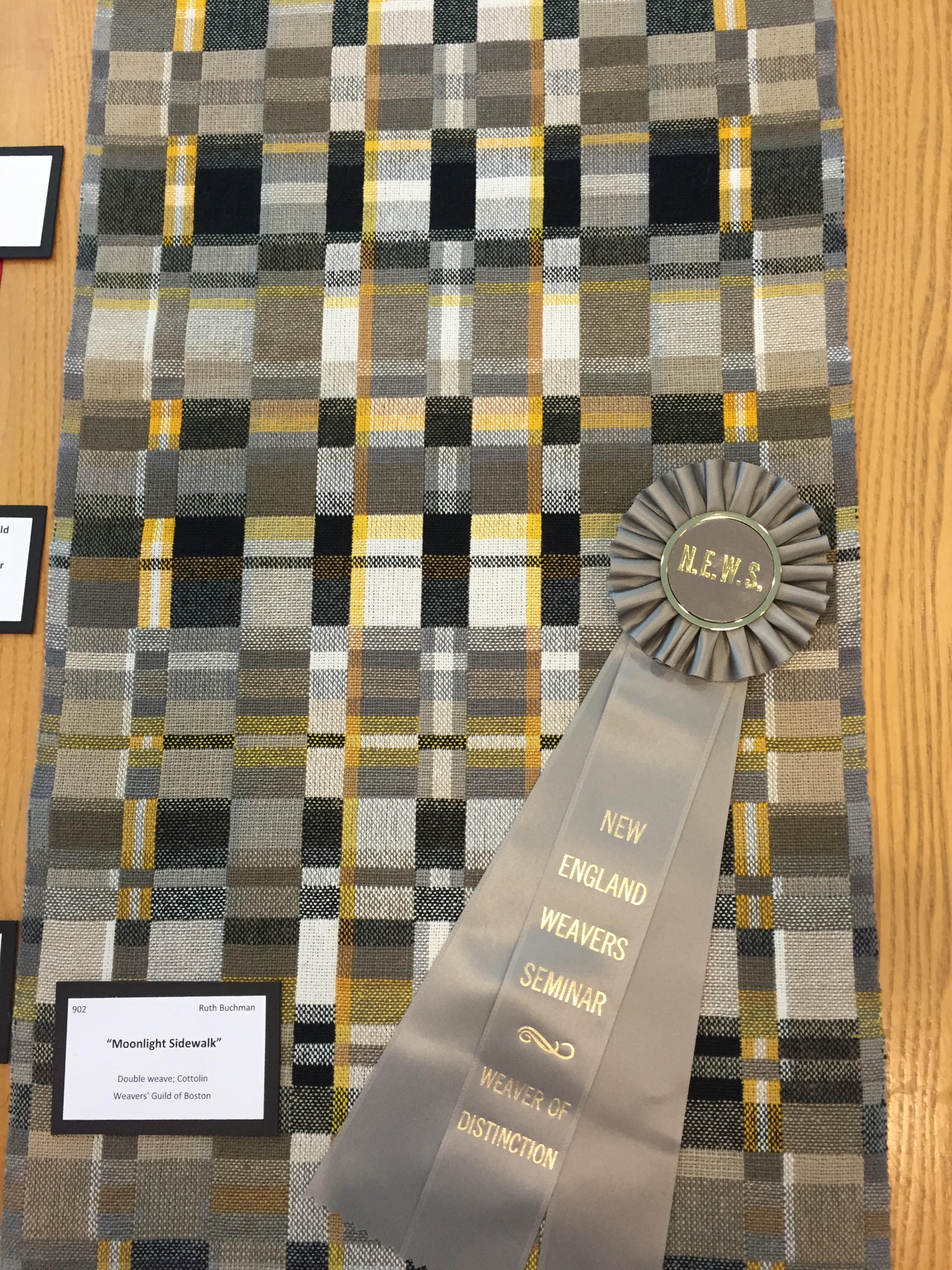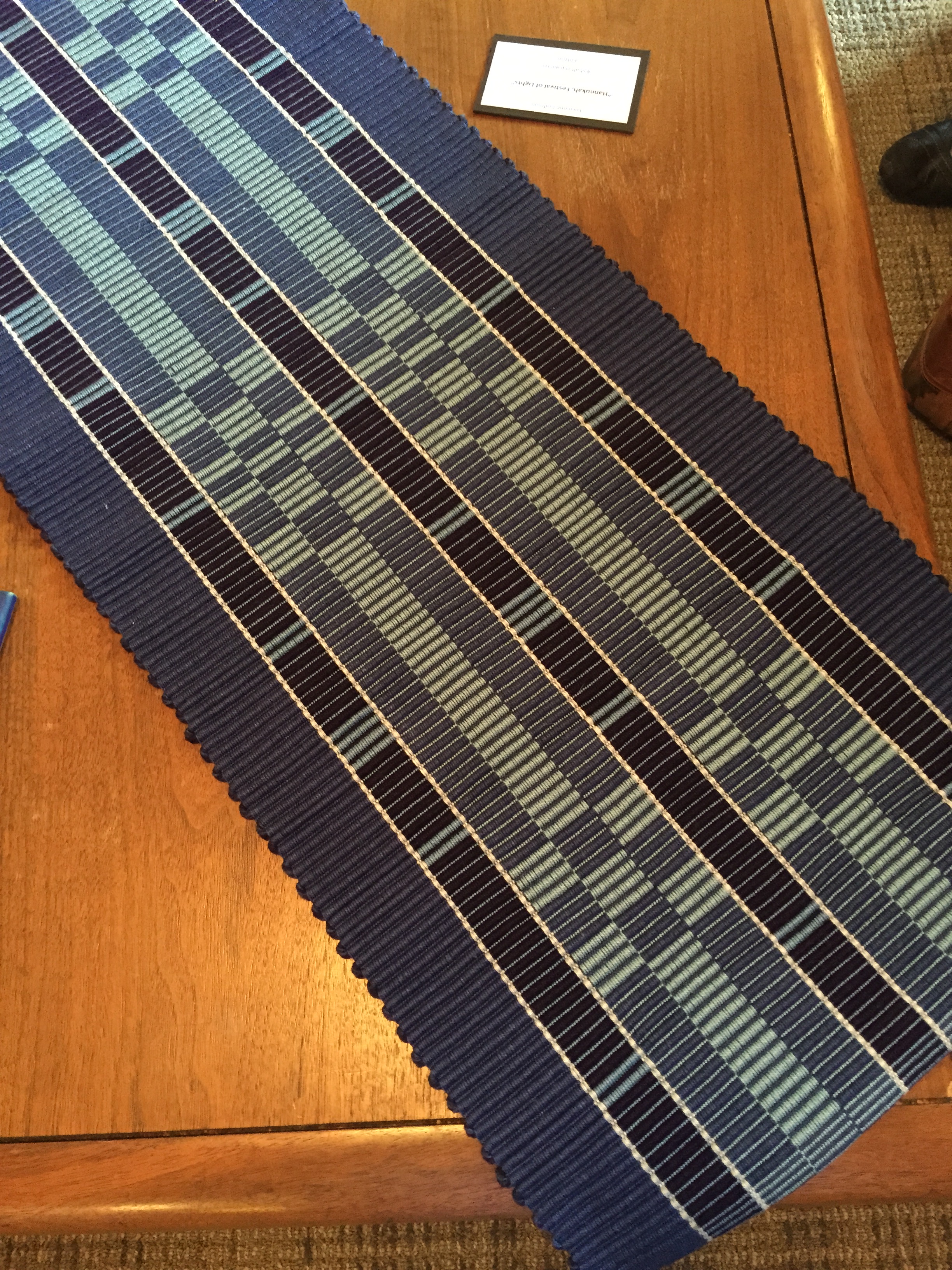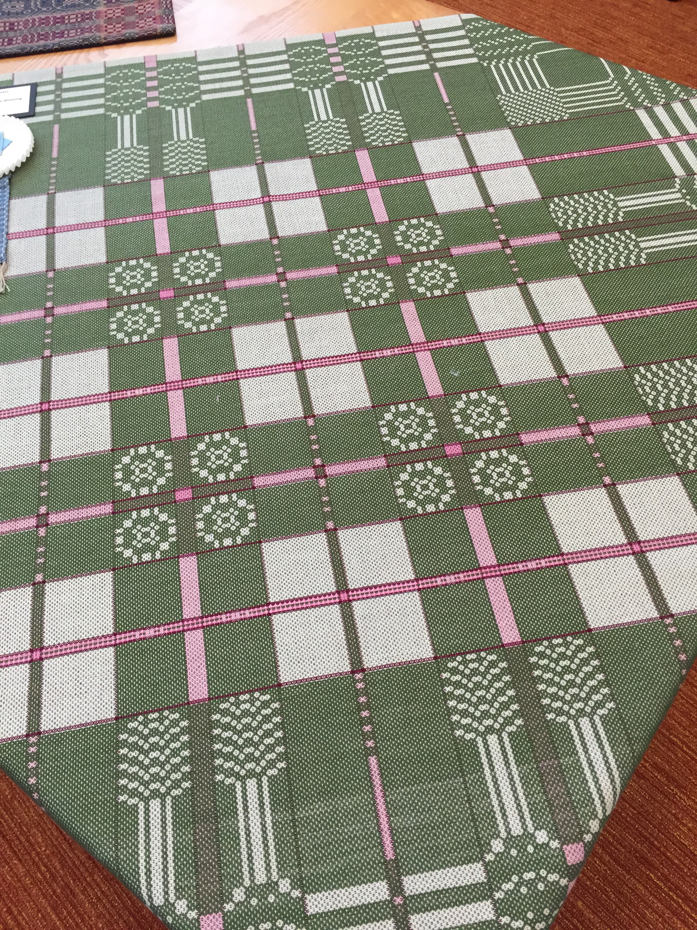 This is a repweave table runner by Lucienne Coifman from my own guild in Connecticut. She is a superlative teacher, and someday I hope to study rep with her.