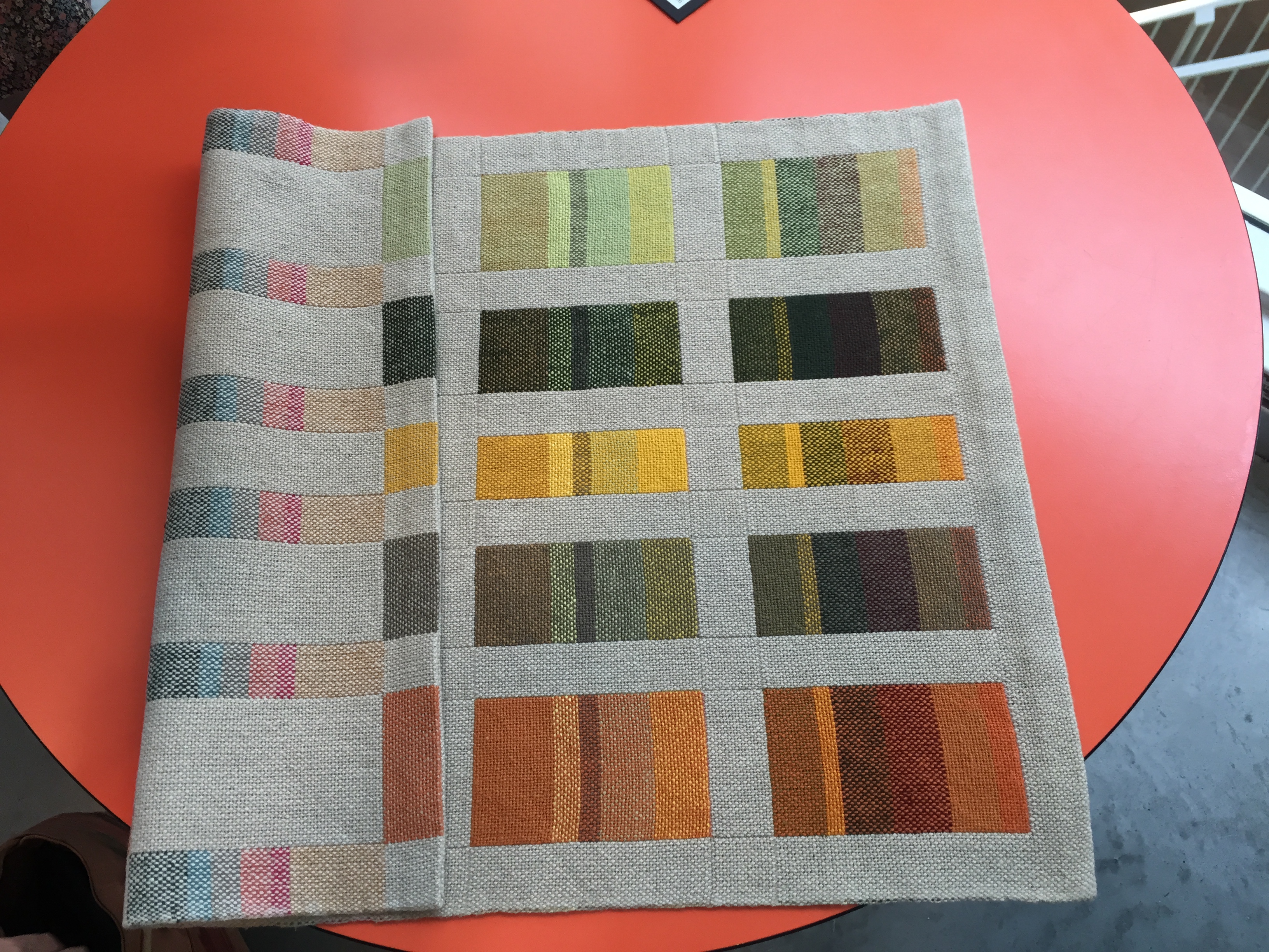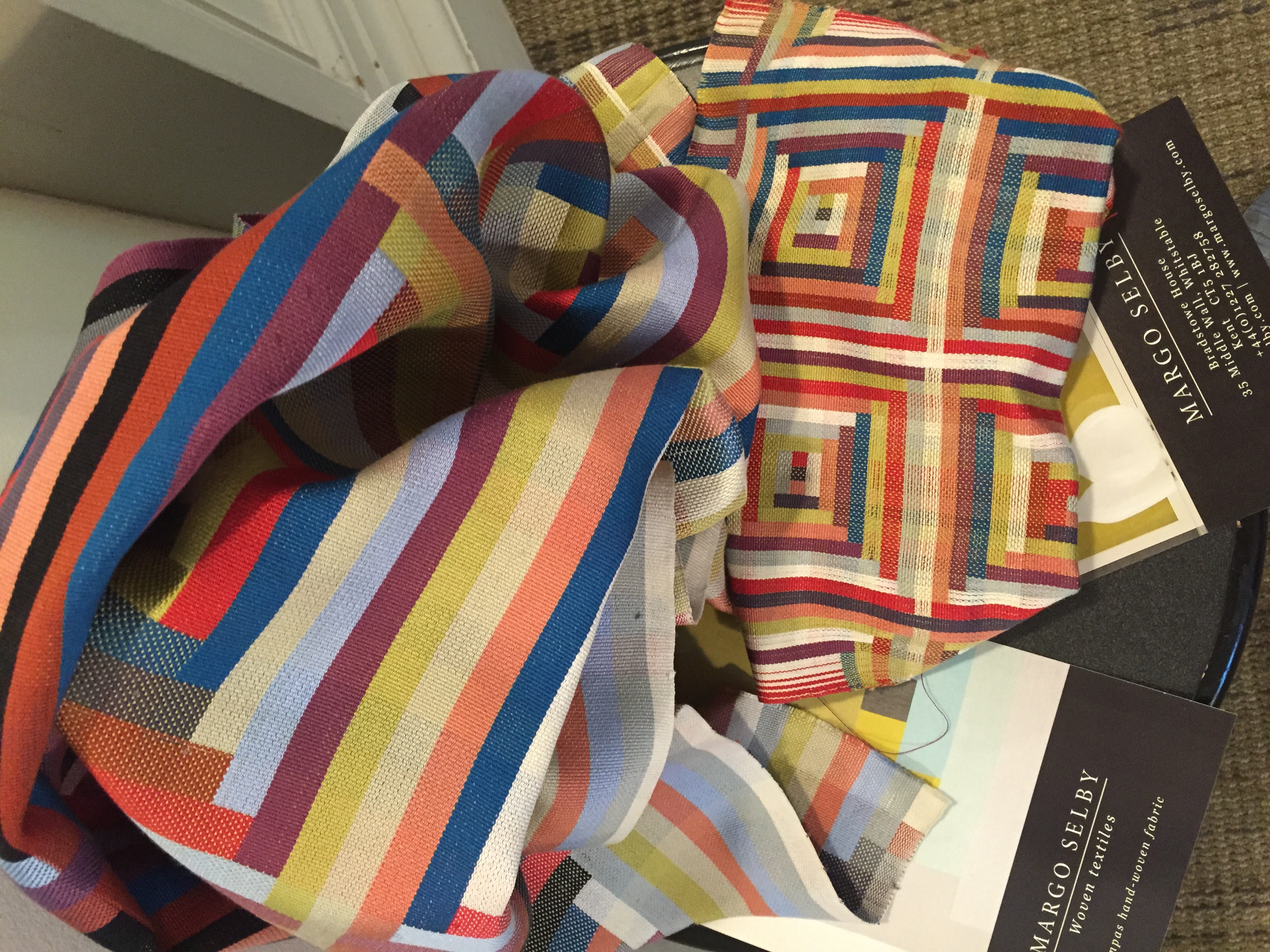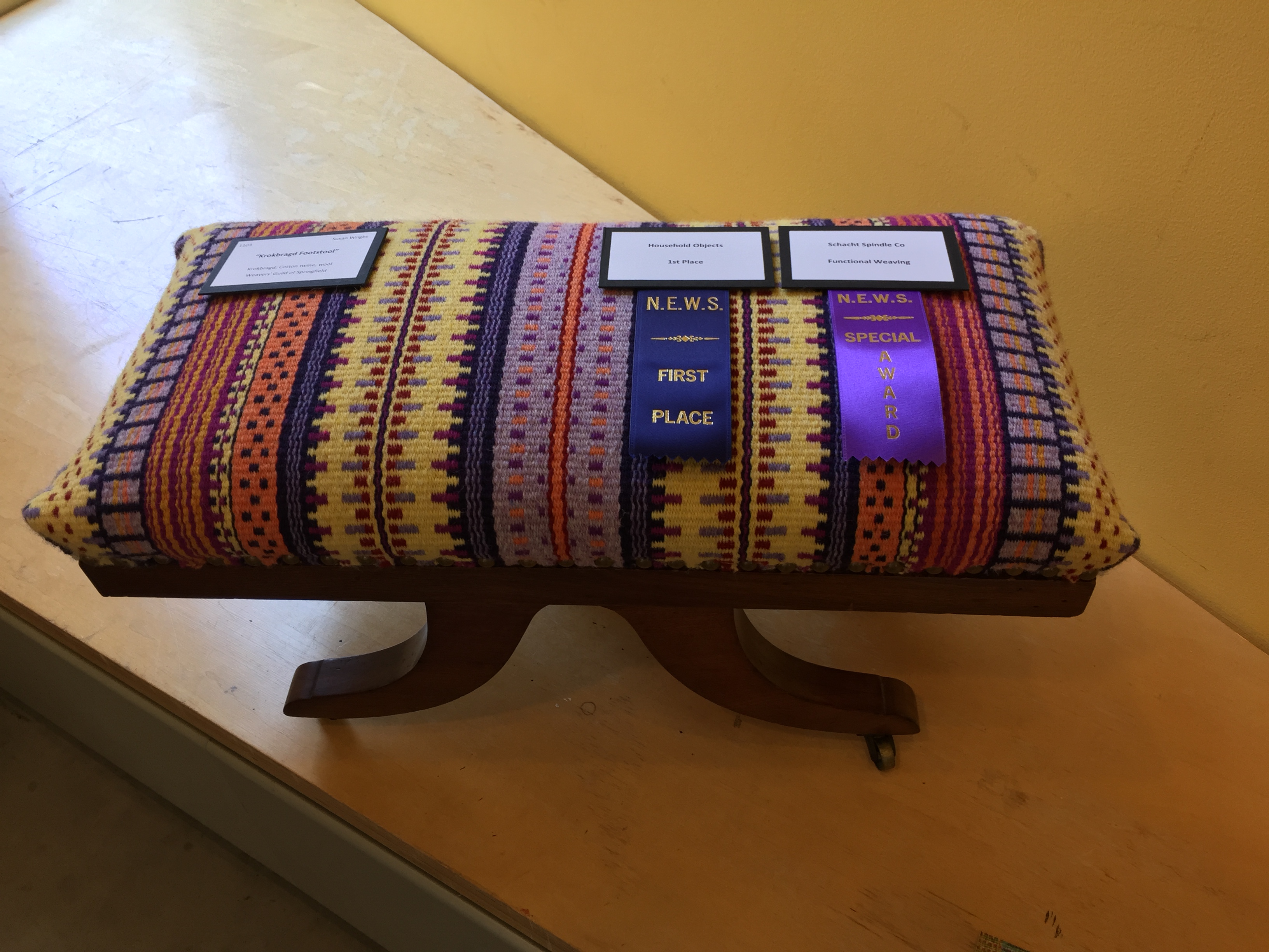 We all loved the upholstered footstool right below my tapestry, woven by Susan Wright. What great use of color. It’s a beauty.