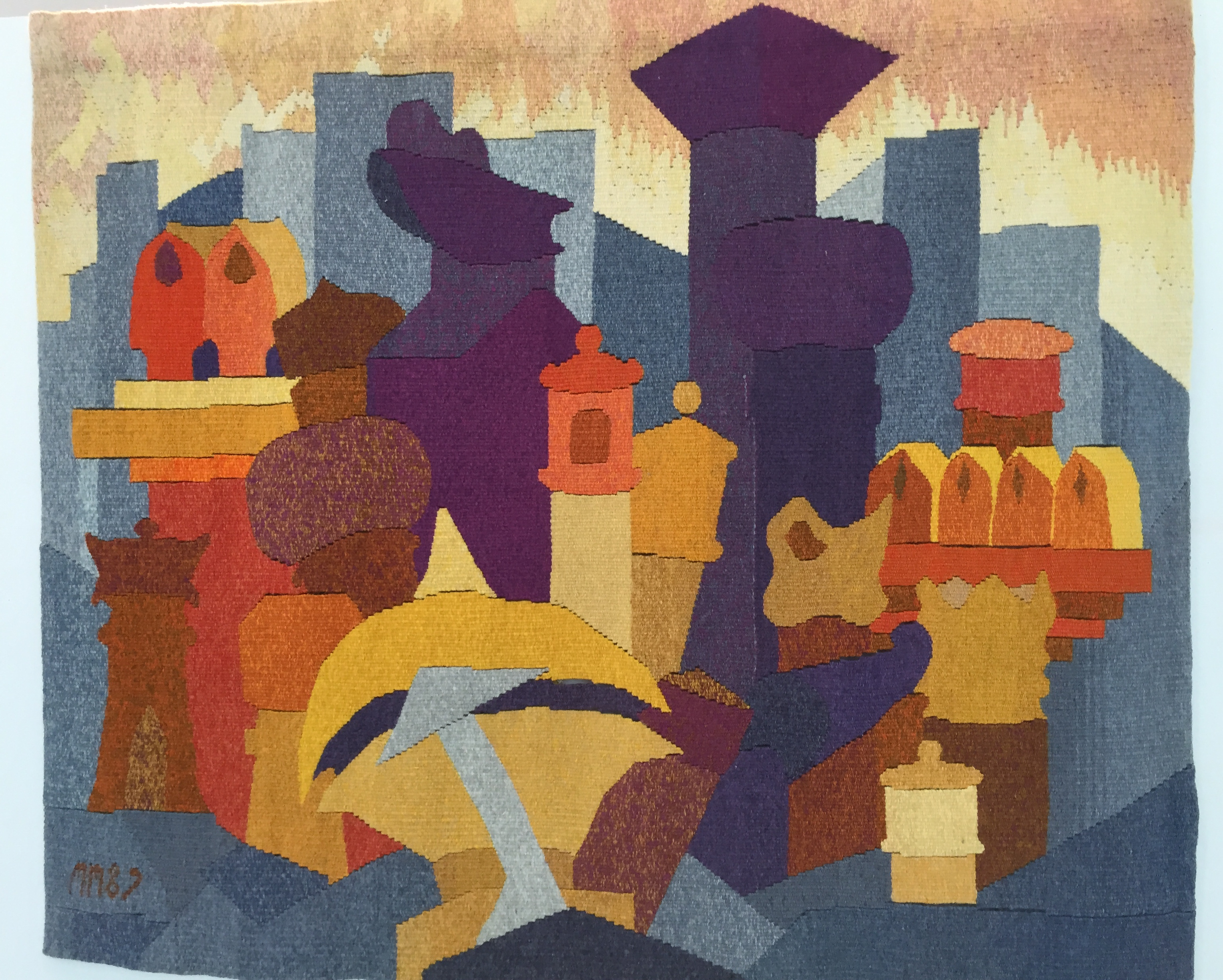There was also a special exhibit of Mary Merrill’s tapestries woven over the decades from the 1950s when she began weaving until her death in the 1999. Her family generously shares her work at gatherings like NEWS. Look how fresh and lush her colors and her shape making are in these two works. This was when I wished I could be at the conference for the entire weekend, so I could come back and visit more than once!