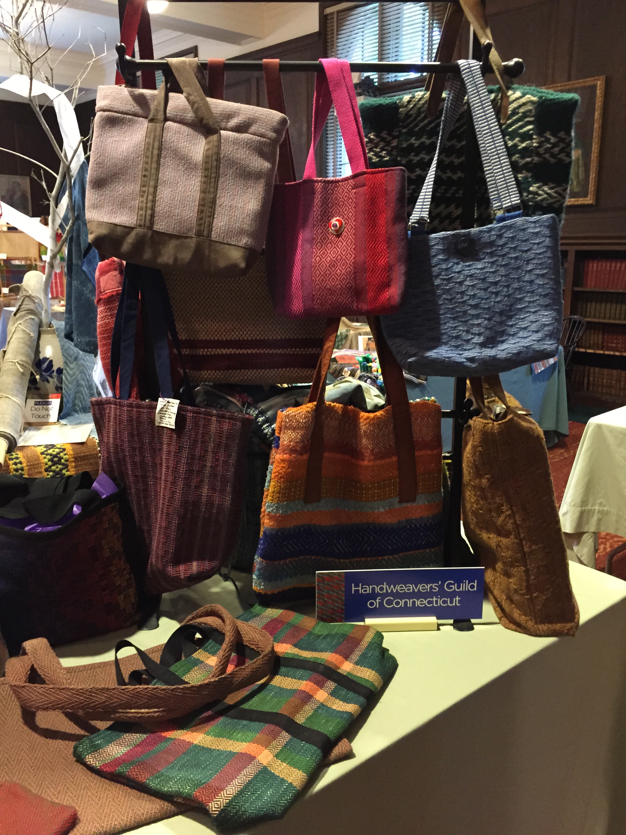 Connecticut Guild’s display of Area 4 lunch totes and handbags.