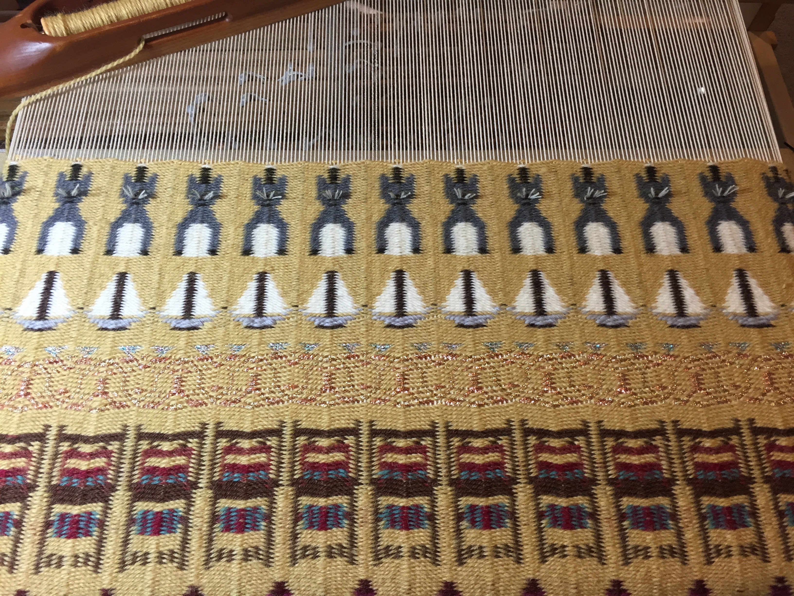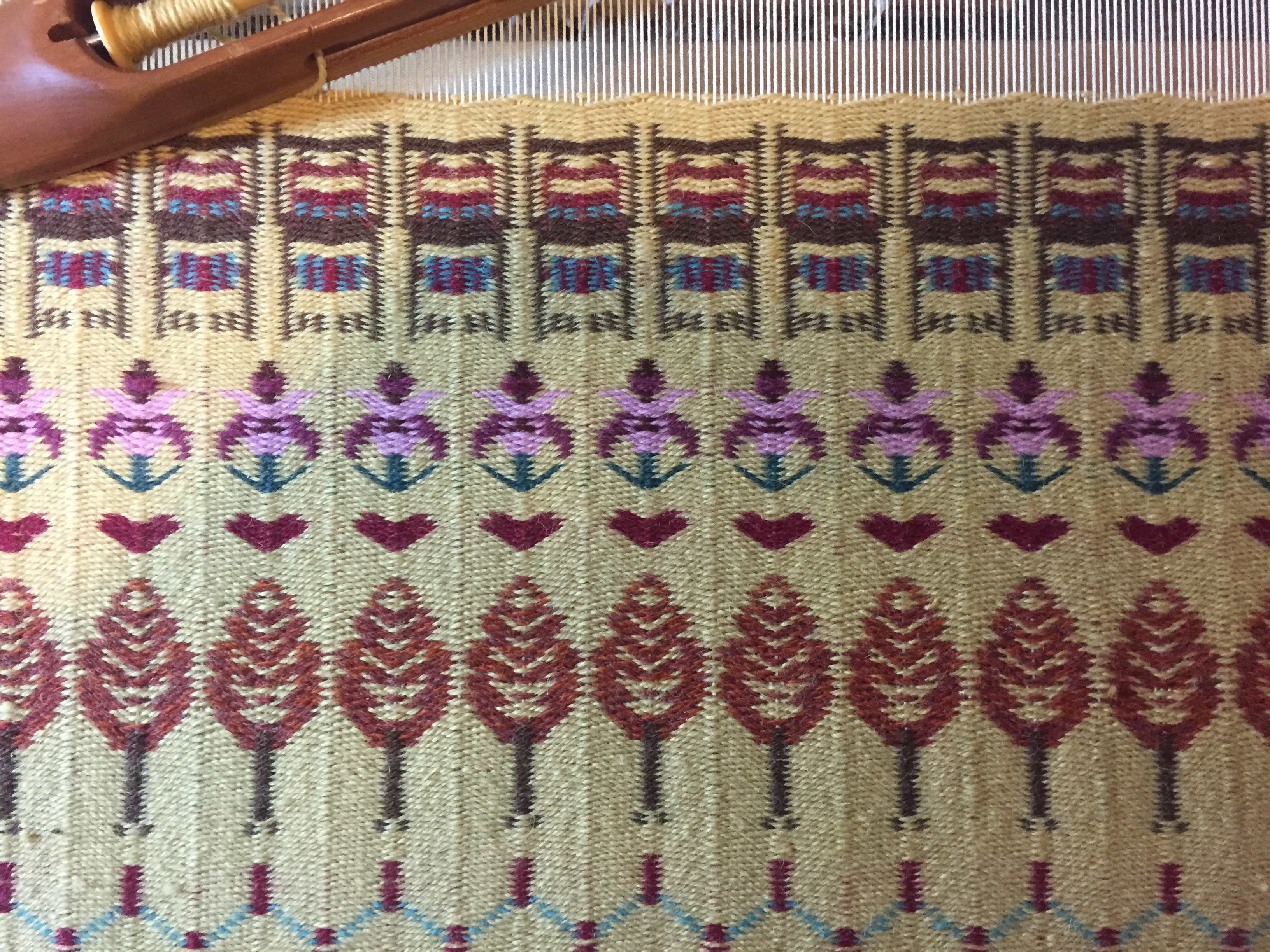 Finally I have turned my attention to a project that has been lingering on my big Toika loom for several years. I managed to move that loom with the warp on it when we relocated here in Connecticut, and I’ve managed to play with it for short bursts over the past few years while we’ve lived here. Suddenly I want it off the loom and on the wall! That’s always a good motivation!