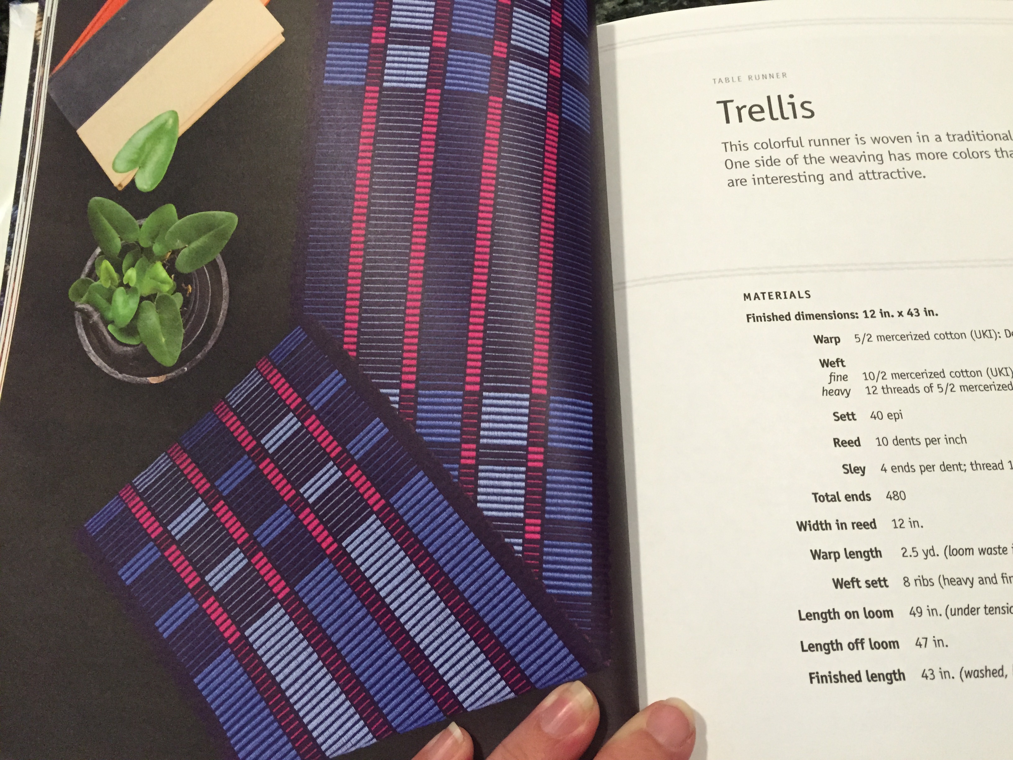 This is the project that is calling me! I think it would make wonderful placemats and runners (in a different colorwary) for my son and his wife’s new dining room. Naturally, I don’t have any 5/2 cotton which is the weight I’d like to try for a rep project. So it looks like a big order is looming….ha ha! I hope I can get it all together before I leave. I know from experience that it is a wonderful thing to come home to a loom just waiting for me to sit down and weave!