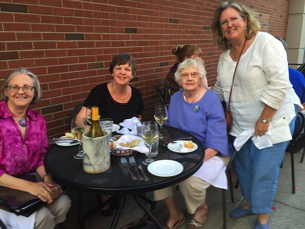After Bob turned 60 in June (I was busy cooking and did not get any photos), I had some wonderful old friends visit in July. We’ve known each other for about 25 years, and we made plans to spend part of our weekend going to the NEWS (New England Weavers Seminar) conference in Northampton….. 4 women of a certain age going to a weaving conference! It was awesome! Here we are at dinner in Middletown on our way back to my house.