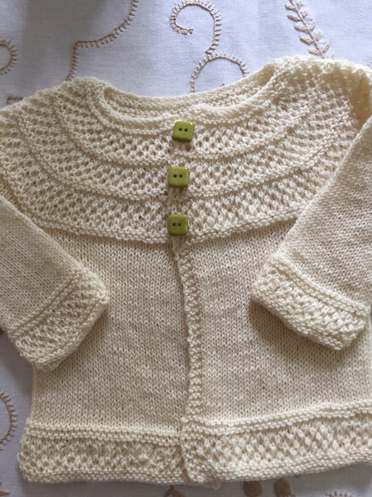 I have little limpet shells from the Bahamas that I will use as buttons instead of what I’ve shown here. I lent my stash of limpets to a friend, and as soon as I get them back I’ll pick out the tiniest ones for buttons on this sweater. I think it will be wonderful to have a little embellishment from our travels on our grandchild’s first sweater. Aren’t I clever??