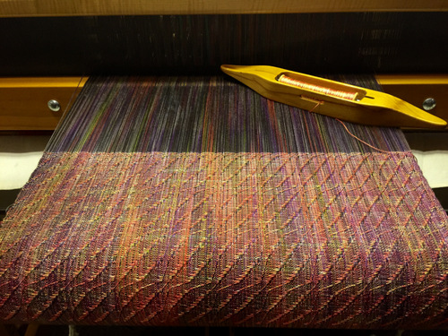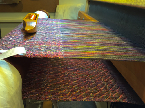 The weave structure and the two very different colorways are creating an amazing fabric!