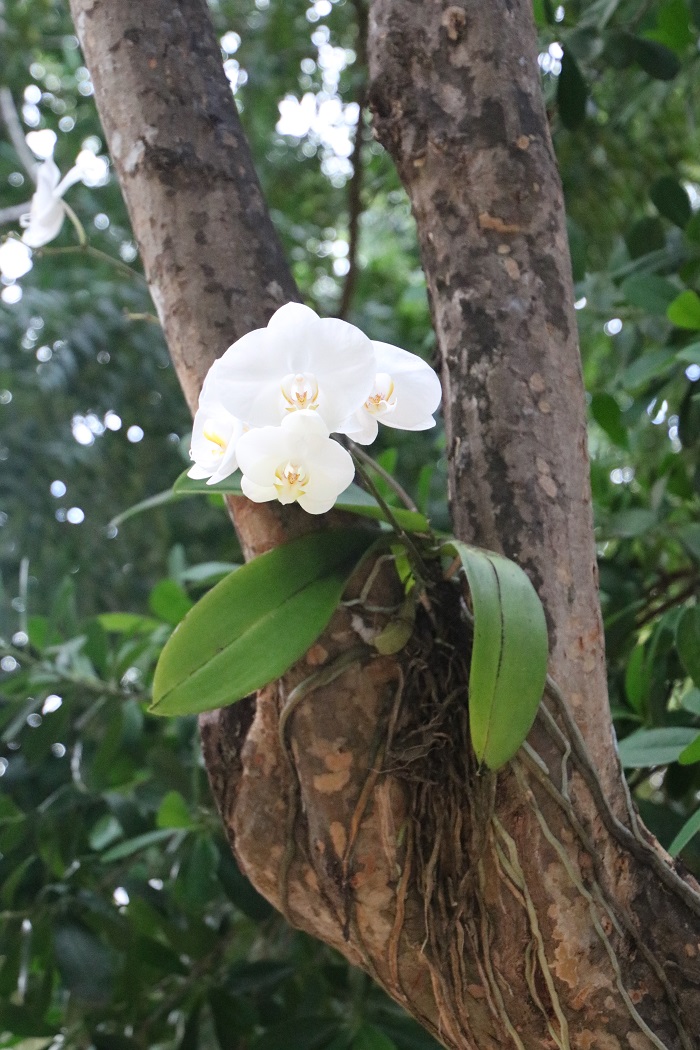 And the sight of a phalaenopsis orchid growing on a tree near the restaurant where we celebrated Bill Woodroofe’s birthday (as in Bill and Maureen of Kalunamoo).