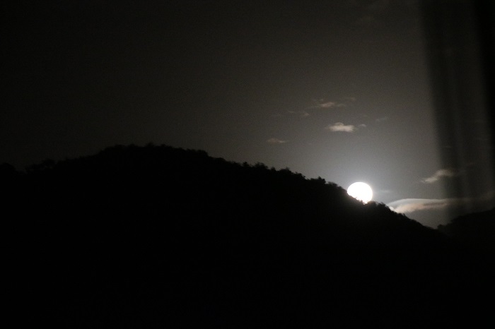Bob often gets up to check all the other things that might be cause for alarm in the night. Mostly these are odd sounds or odd feelings. Are we dragging? Is the anchor chain chafing? He got a beautiful shot of the moon setting over the western hills of the harbor this week during one of his wake up calls.