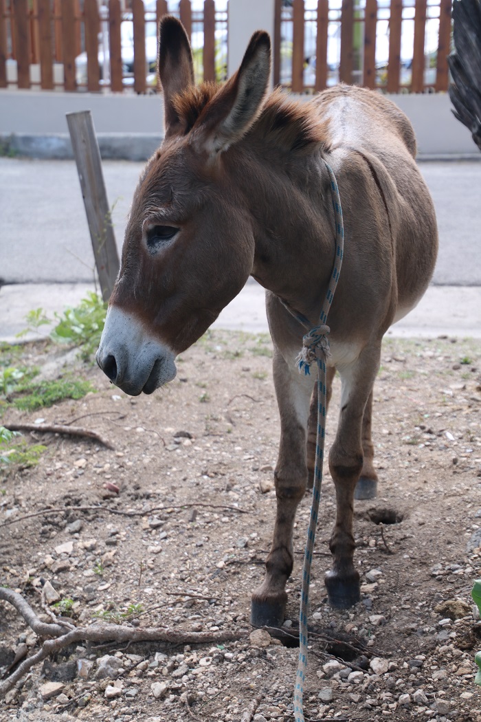 We go ashore almost every day, and now that we’ve been here three weeks (due to very high winds), it has begun to feel that there is nothing new left to do ashore. But it’s still a very different place than home, and there is always some little something that we haven’t seen before. This week it was a donkey tethered to the town dinghy dock. It had such a sweet disposition, just chillin’ while she waited for her owner.