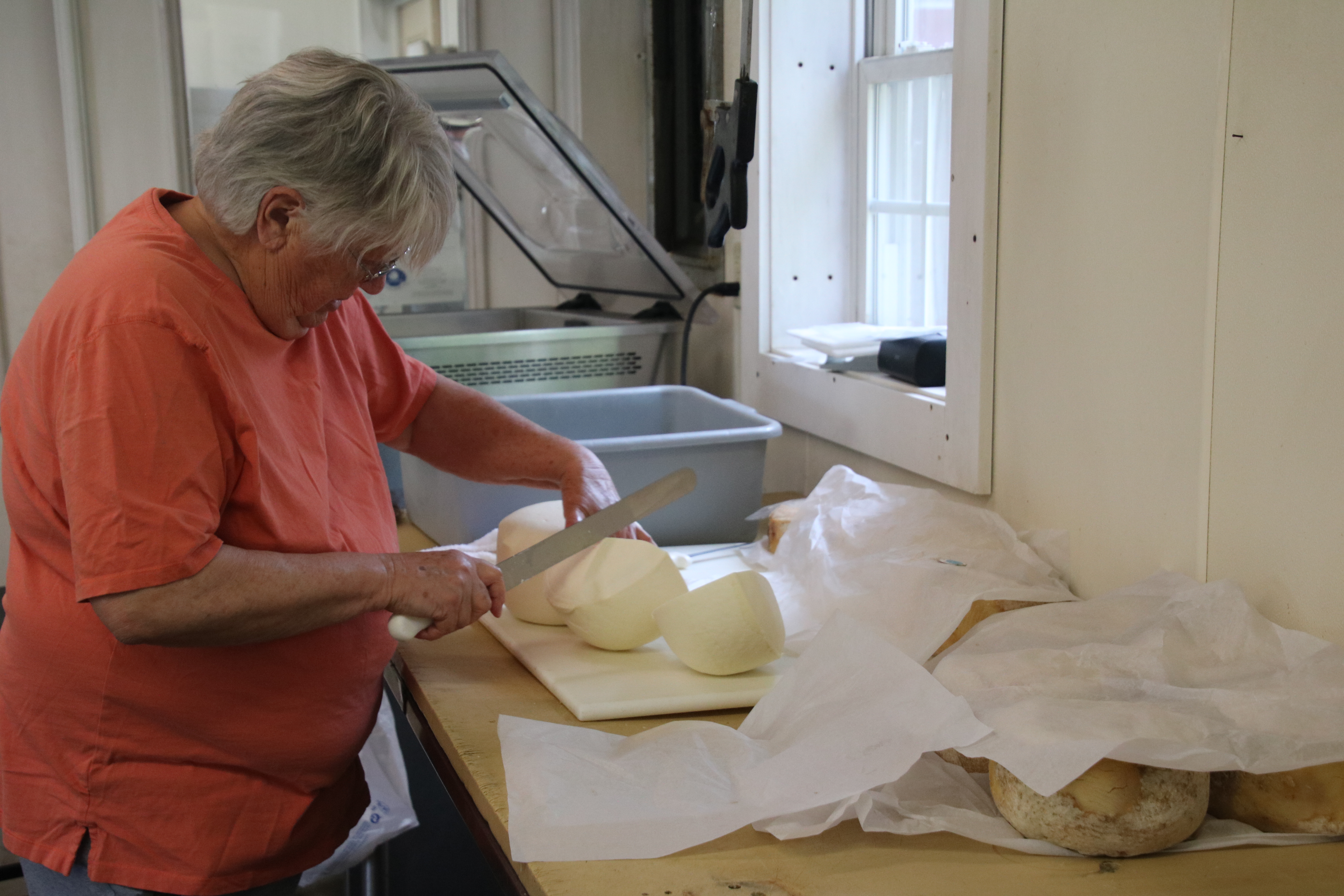 And here is a counter of aged Farmstead ready to be cut and packaged. It is a semi-firm cheese with a LOT of great flavor.