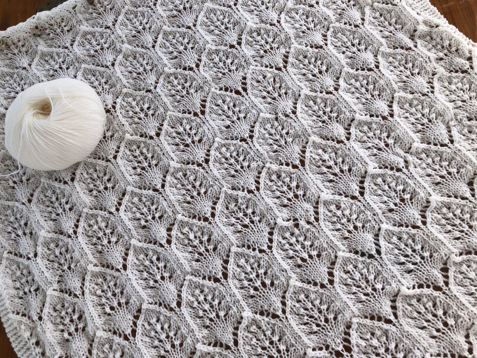 Isn’t the lace pattern in the printed directions delightful? I am now finished with that first large spruce tree pattern that you can see on the print out. I can’t photograph it because my needles are too short! My knitting is completely bunched up on my short needles, but there is no place to buy knitting needles down here!
