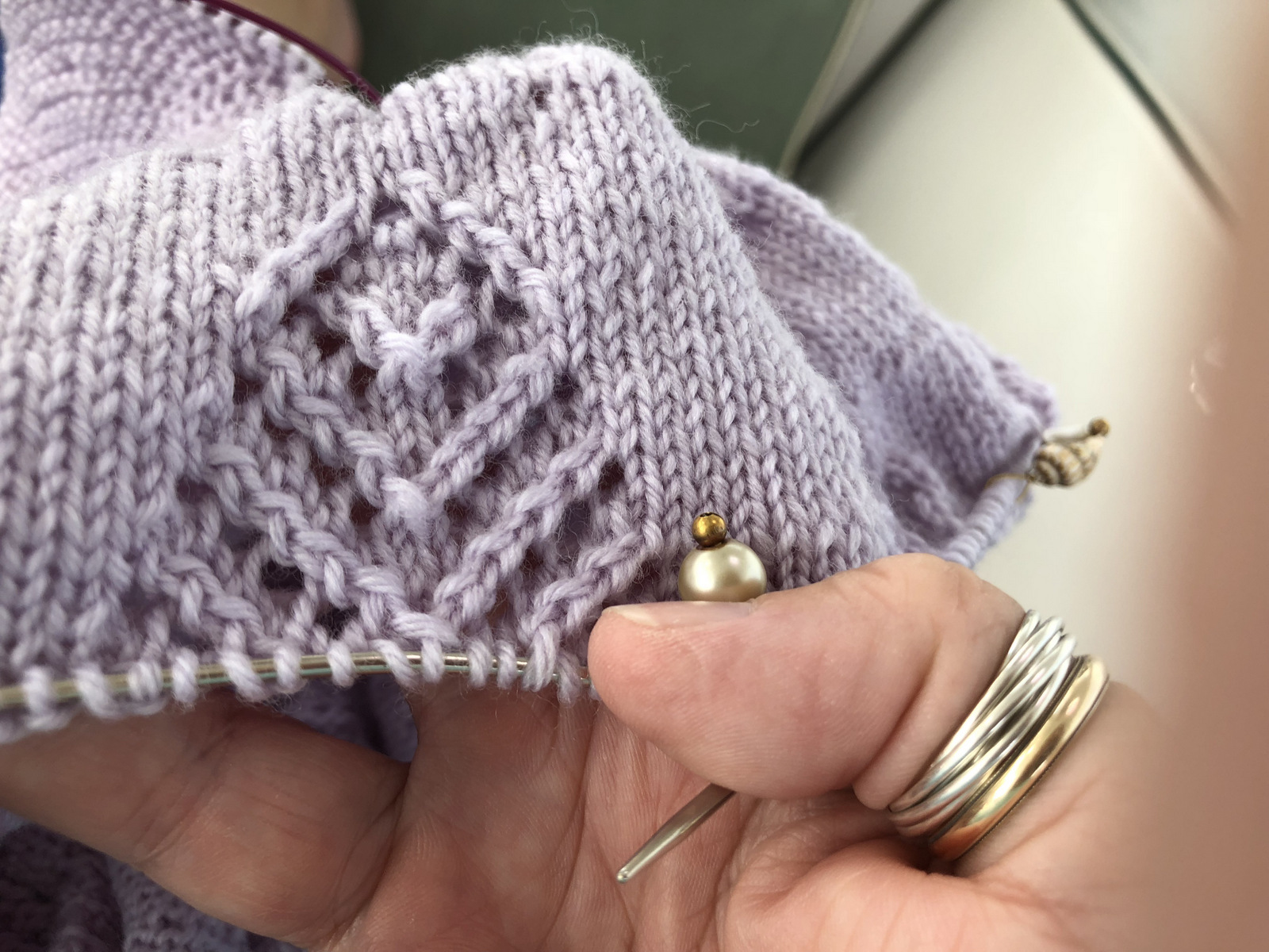 Okay, well, I couldn’t resist trying. So, excuse how rumpled this looks. It’s way too crowded on the needles. And, again, photos are struggling, so you cannot even see the spruce pattern that was the entire reason for taking the photo under less than ideal circumstances. Internet here is unreliable, at best! I supposed it builds patience, but that is NOT my forte.