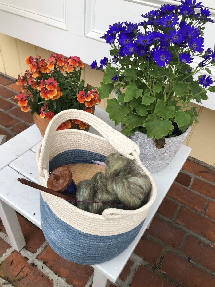 It was a lovely day for spinning on the deck, and I managed to make it fairly comfortable since I cannot get out the summer furniture on my own. A few cushions, a small table, and a big water bottle. The black flies are a bit of an annoyance this year, but mostly the breeze kept them at bay.